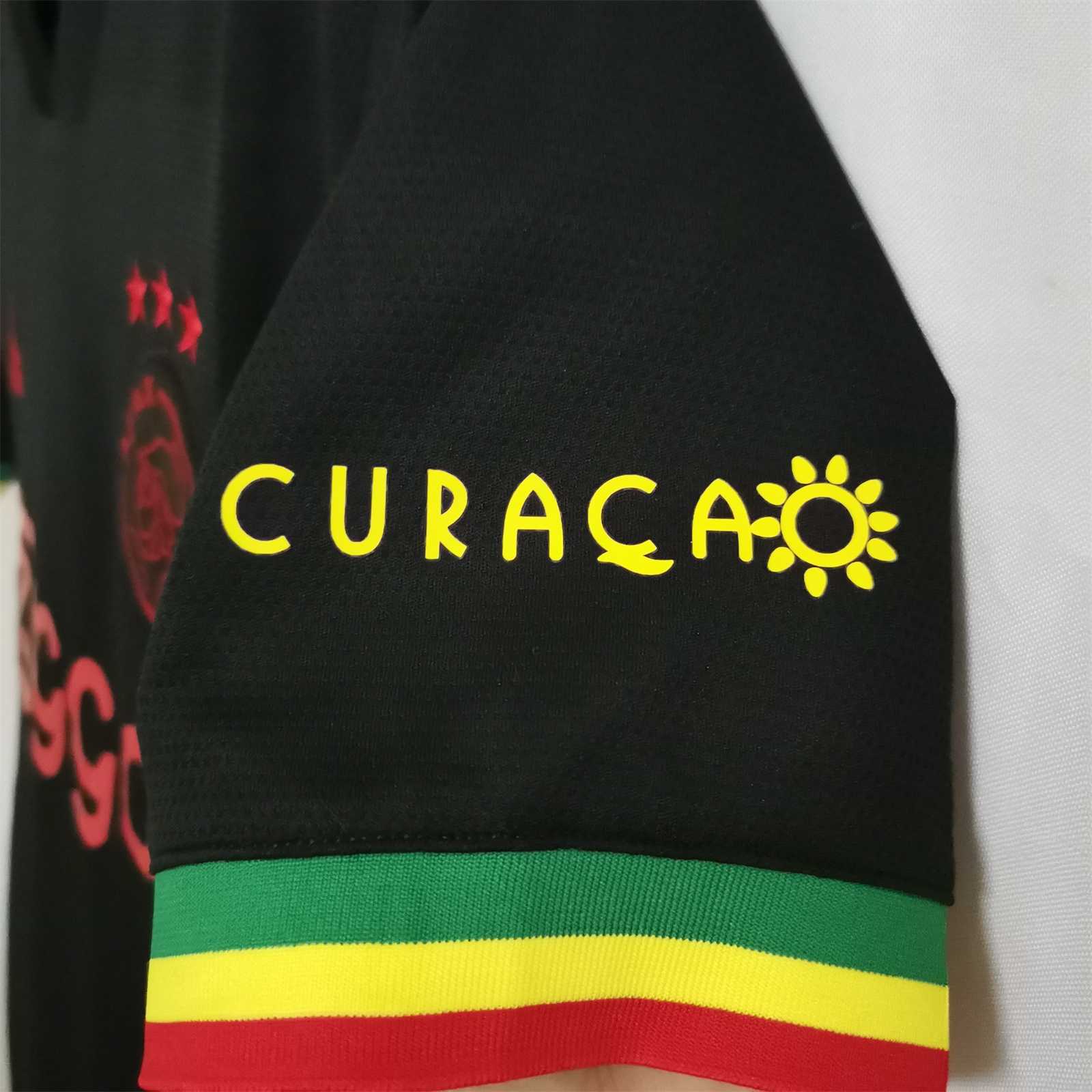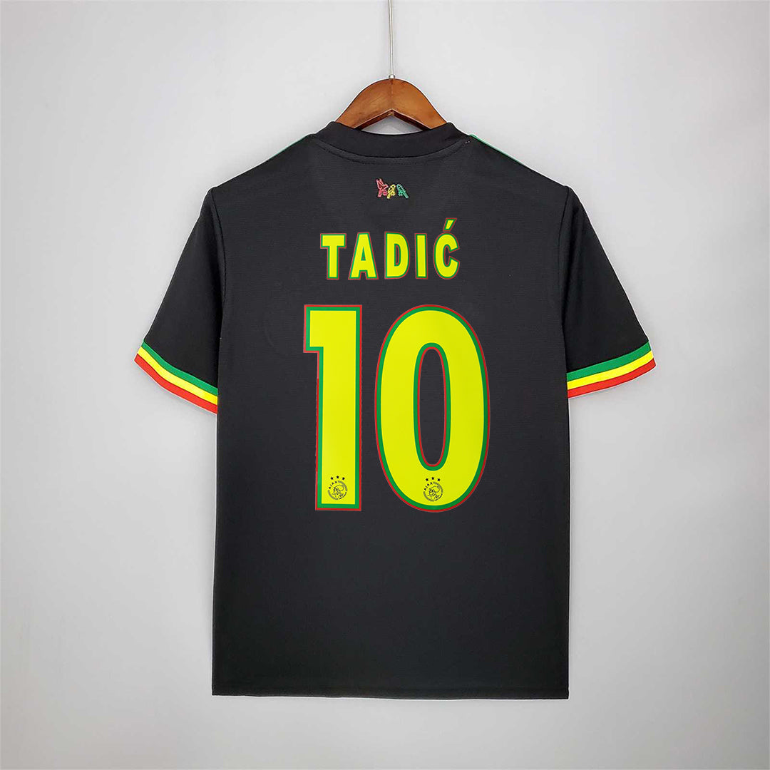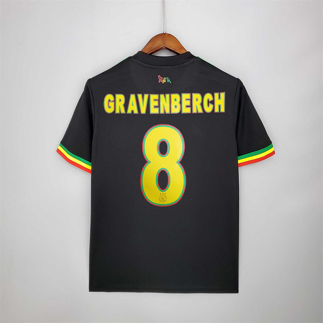 Ajax's 2021/22 special edition fan jersey pays tribute to Bob Marley and the song "Three Little Birds," which has become the club's anthem. The black design is distinguished by details in red, yellow, and green, a symbol of reggae culture and the union of music and football. An iconic jersey that transcended borders and became a collector's item for fans around the world.