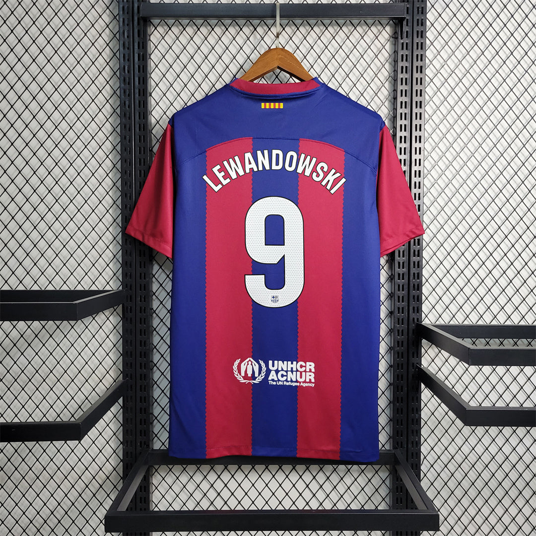 Barcelona 2023/24 home shirt in a fan version, featuring the classic Barça design with a refreshed touch that incorporates wider stripes and a diamond detail on the crest in homage to the 30th anniversary of the first Barça women's shirt.
