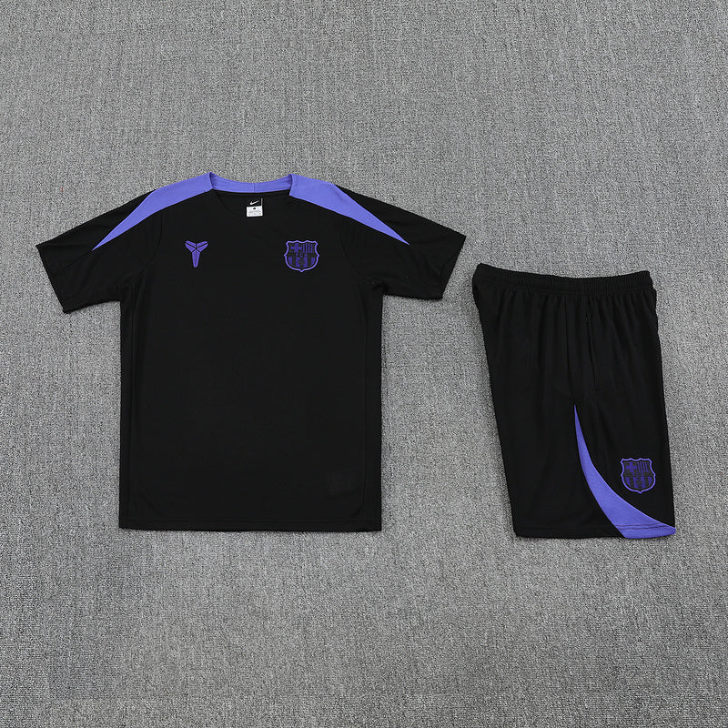 Barcelona 2025/26 training kit in collaboration with Kobe Bryant , a special edition that fuses the Blaugrana legacy with the mystique of the eternal "Black Mamba." Consisting of a shirt and shorts, this set combines Barça's signature colors with graphic details inspired by Kobe's career, creating a unique design that transcends sport.