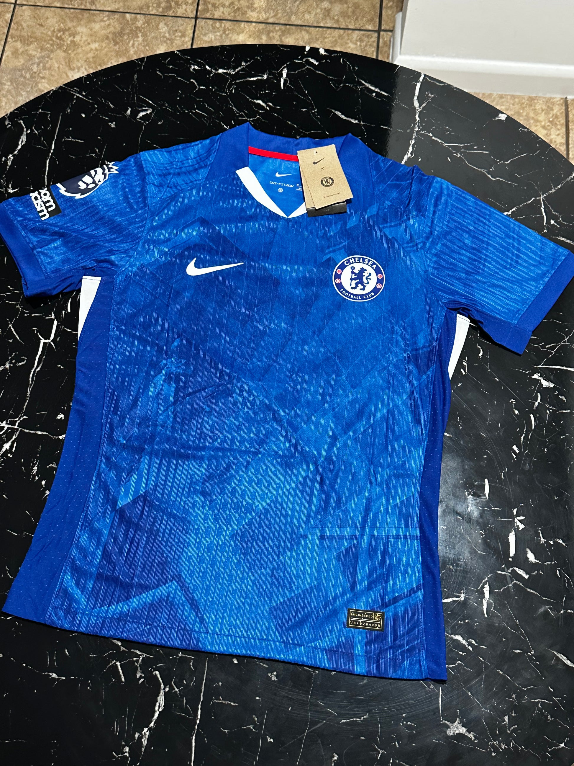 Chelsea FC 2025 Player Version Home Shirt. Slim fit, lightweight, high-performance fabric, and heat-sealed details, just like the one worn by the players on the pitch.