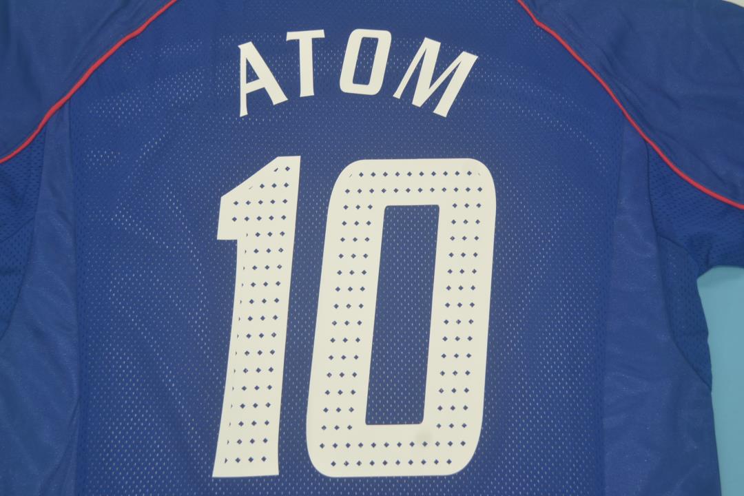 Japan 2002 home retro jersey, featuring a deep blue design, white details, and a flame pattern on the sides, characteristic of that era. Remembered as the model worn by the Japanese national team as co-hosts of the 2002 World Cup in Korea-Japan, with stars like Nakata and Ono shining in front of their home crowd. An iconic piece for collectors and fans of Asian football.