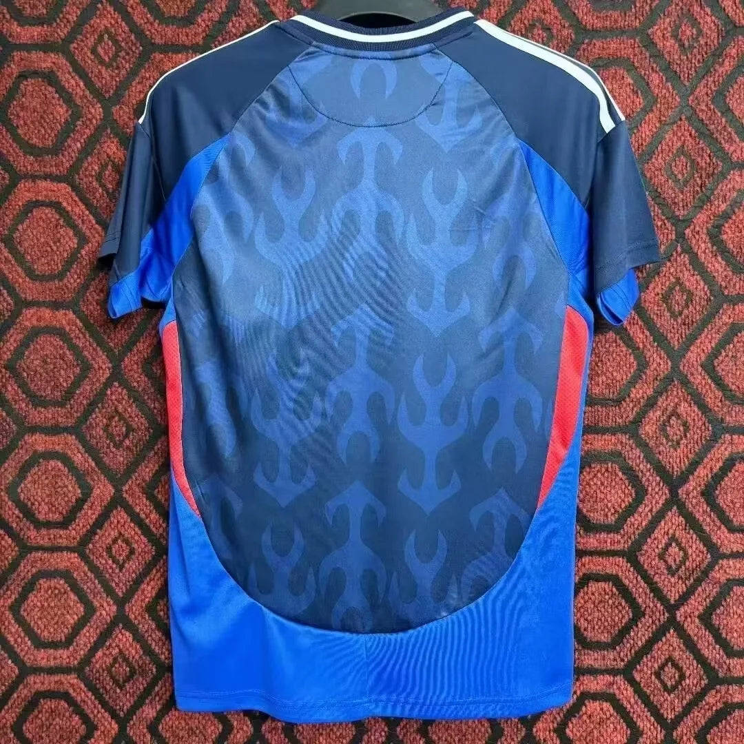 Japan 2024/25 home jersey in a fan version, featuring a modern design that combines traditional blue with patterns inspired by Japanese culture. Ideal for fans looking for everyday comfort and style while maintaining the Japanese national team's identity.