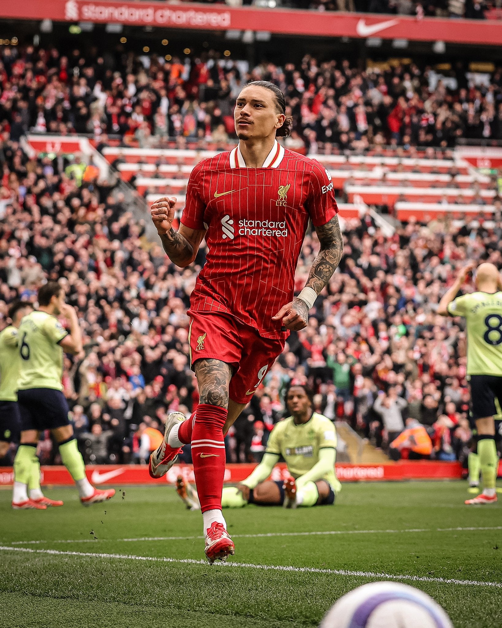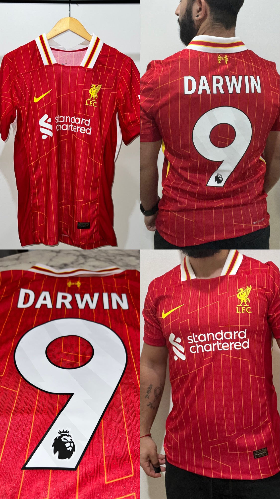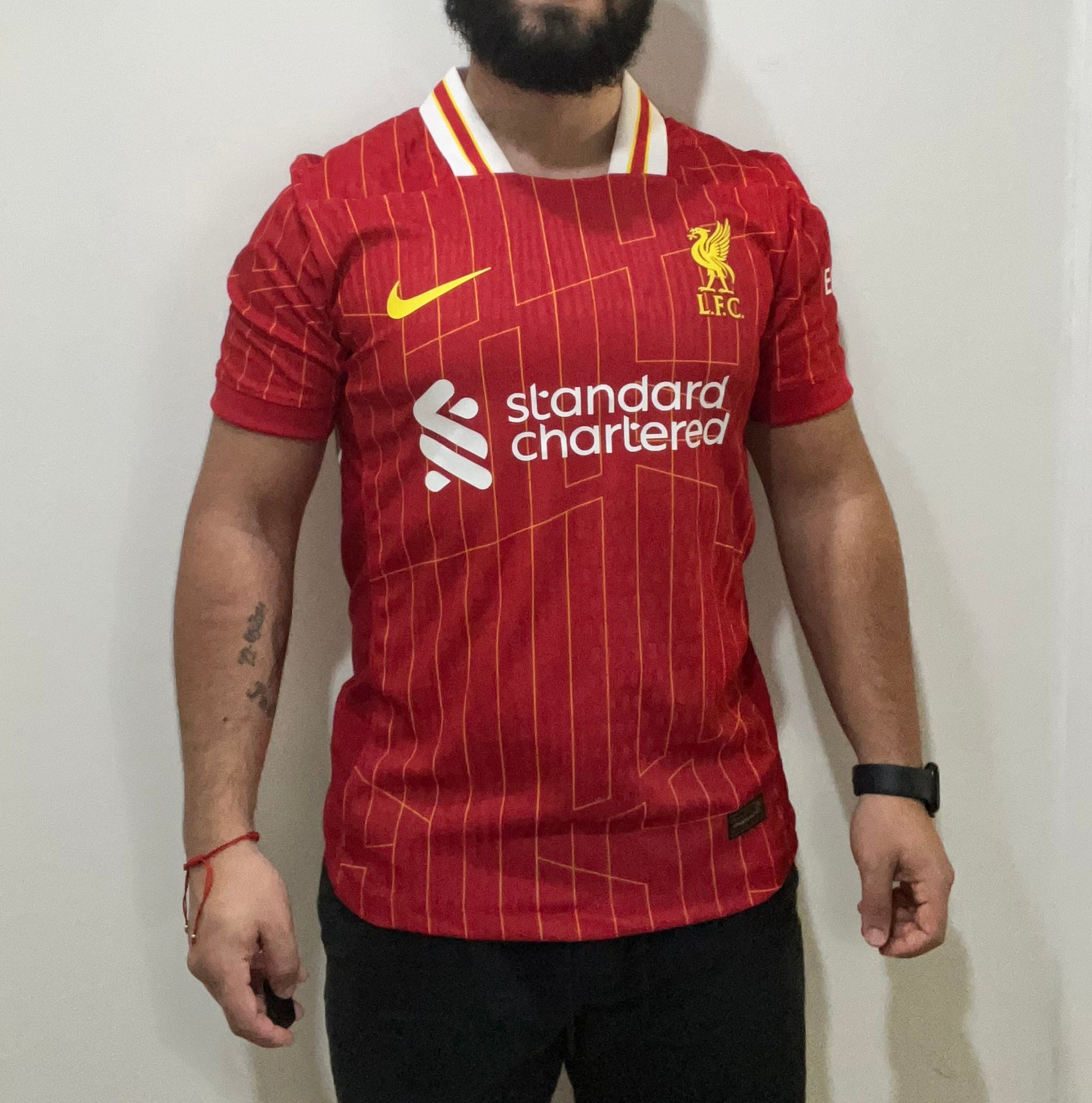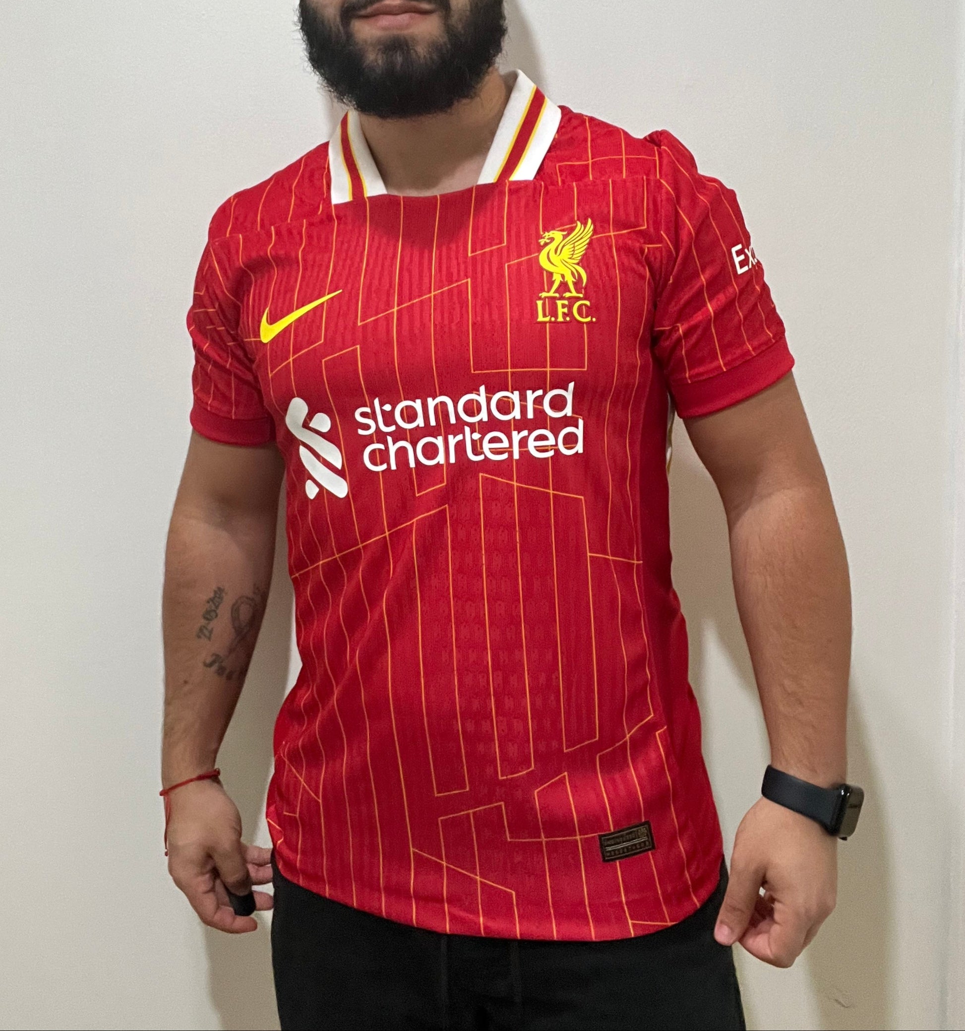 Liverpool FC 2024 Player Version Home Shirt. Slim fit, lightweight, high-performance fabric, and heat-sealed details, just like the one worn by the players on the pitch.