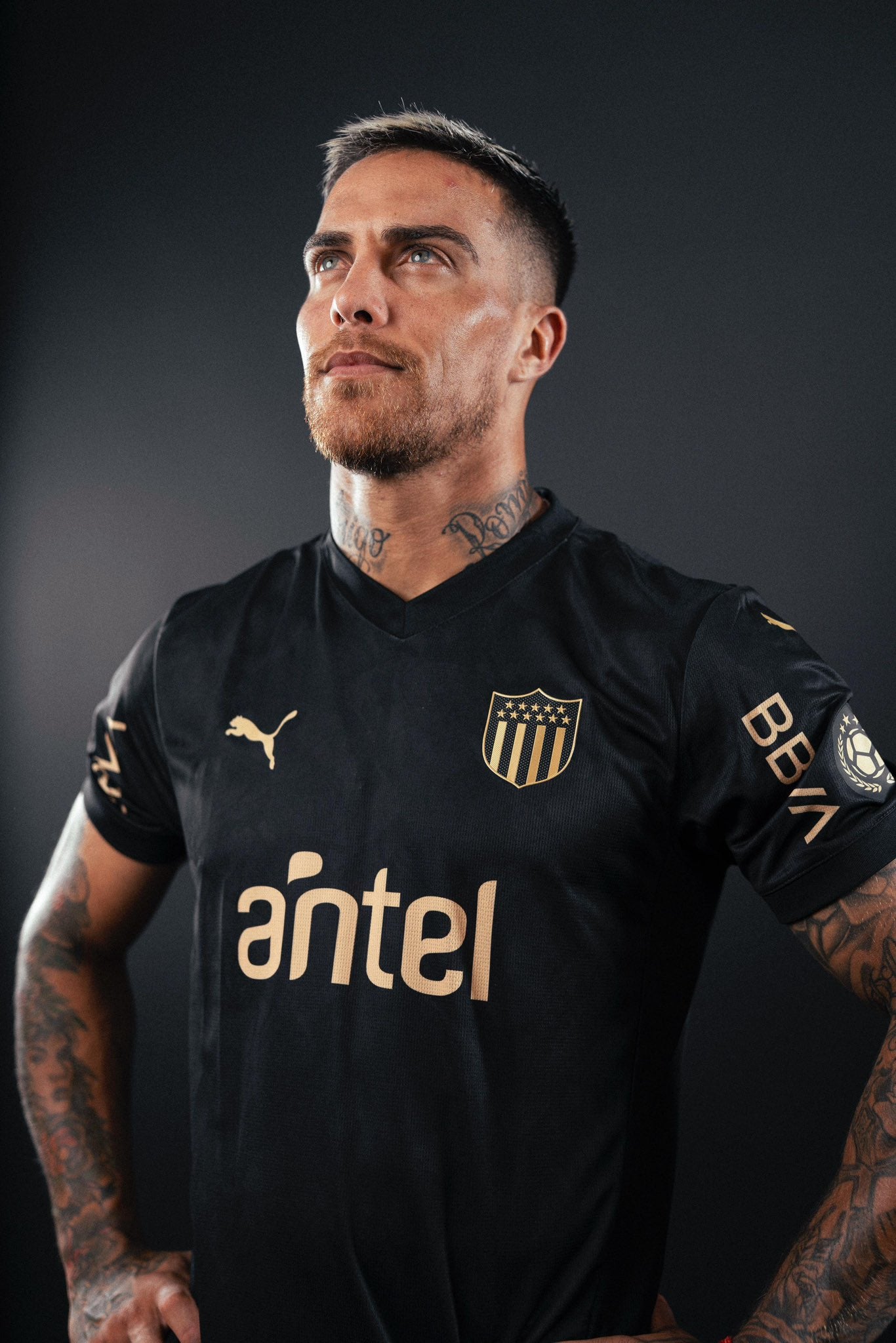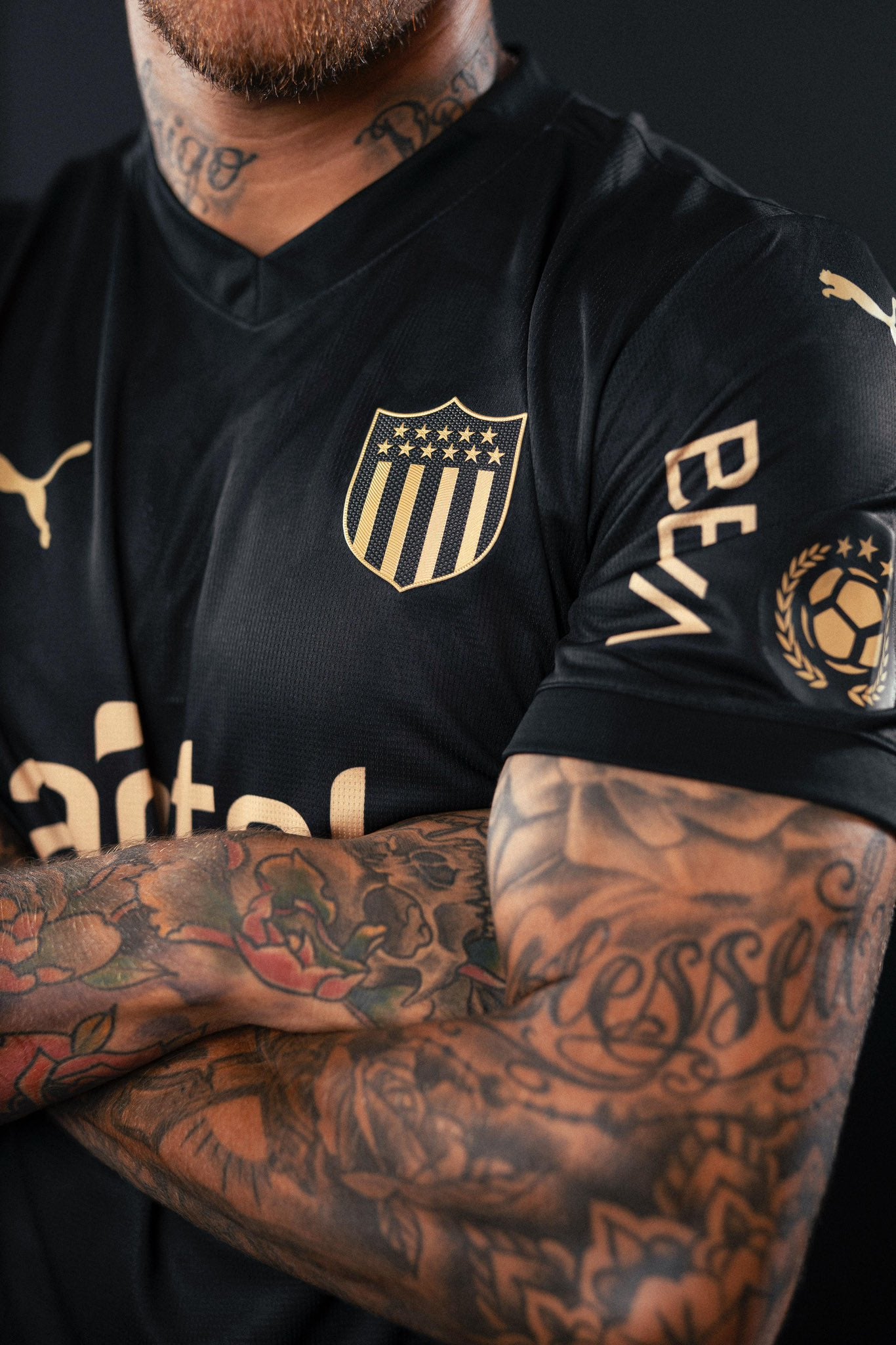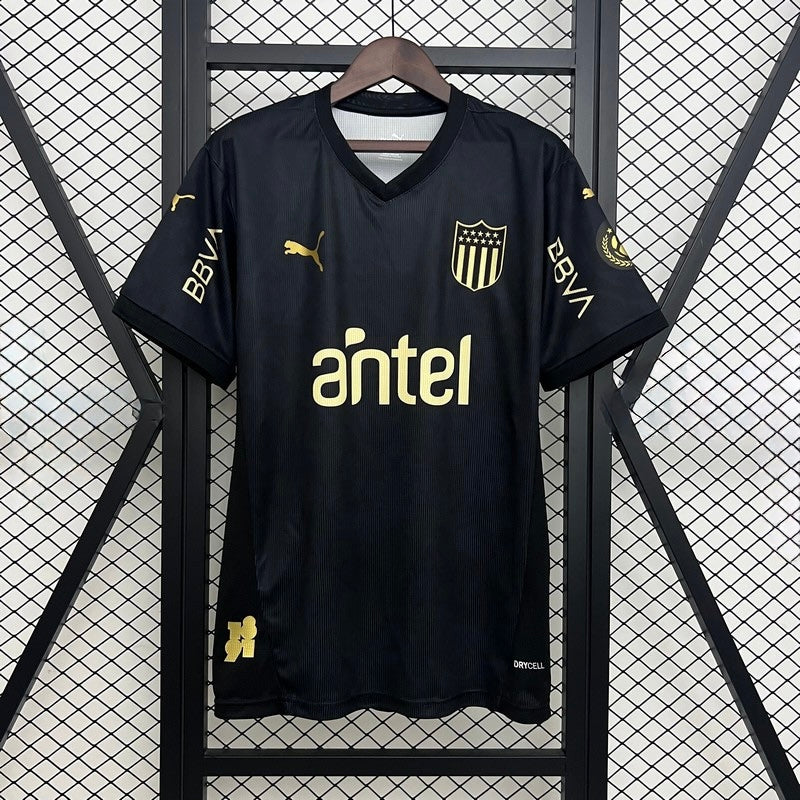 Peñarol's 2025/26 away jersey, fan version, features a modern design that combines the traditional black and gold with a refreshed style for away matches against the Champion of the Century. With a light base and black and yellow details, it maintains the club's identity in a fresh look that stands out both on the pitch and in the collection.