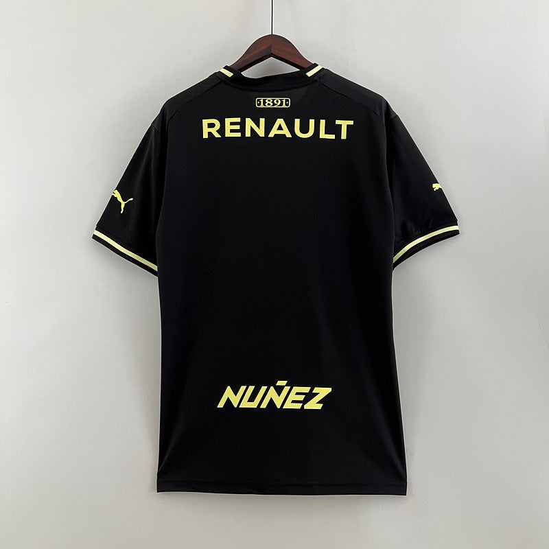 Peñarol 2023/24 away jersey in fan version. A looser, more comfortable design with an embroidered crest and details, ideal for everyday wear or cheering from the stands. With its distinctive white color and black and yellow details, this garment combines the carbonera identity with comfort.