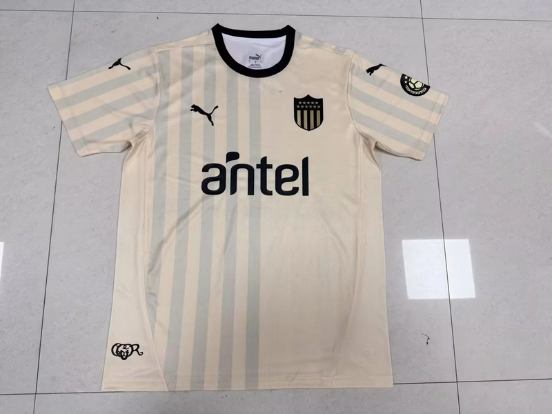 Peñarol 2025 away jersey with an innovative design that breaks away from the traditional black and gold scheme. It features a combination of colors and exclusive details designed for this season, maintaining the Carbonera identity with a modern and striking touch. Ideal for fans looking for a unique piece for their collection.