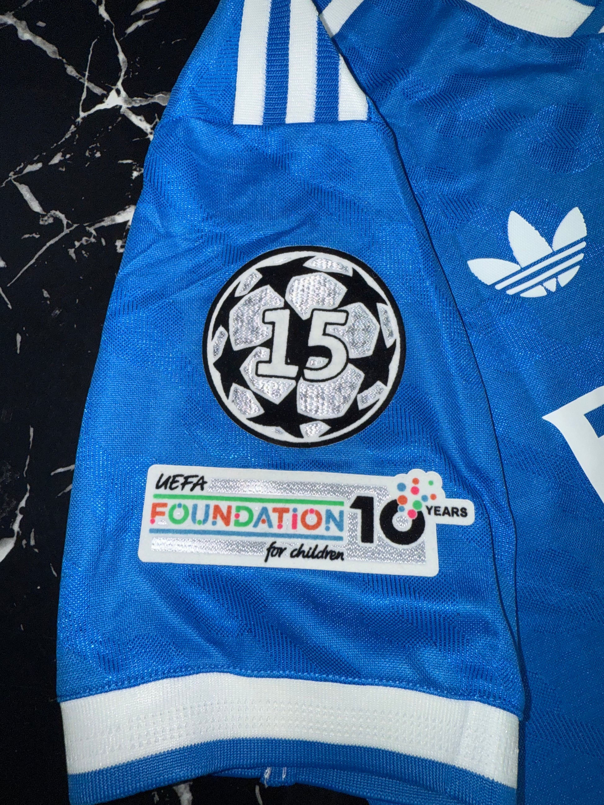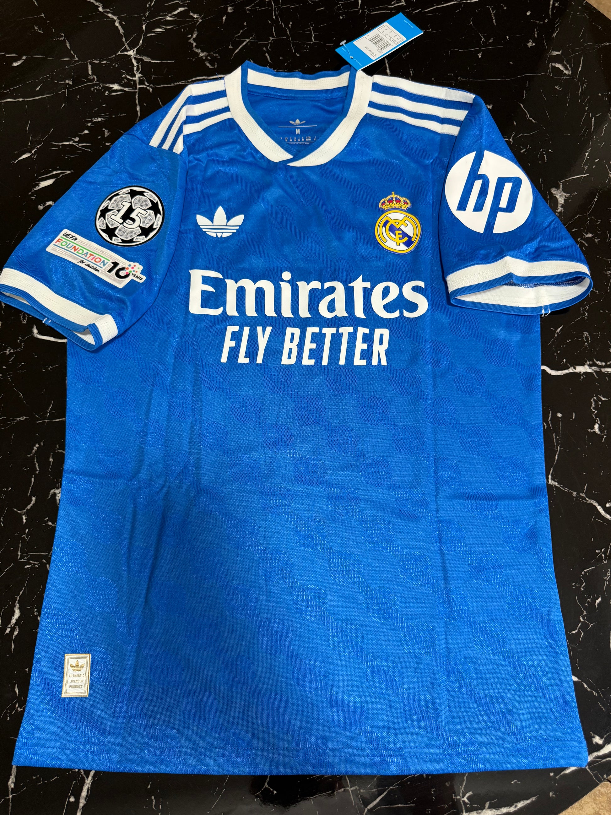 The intense blue color is combined with white details on the crest, logos, and sleeves, creating a contrast that gives it its own personality. This shirt has already been worn in Champions League matches, reaffirming its place as one of the most striking of the season.
