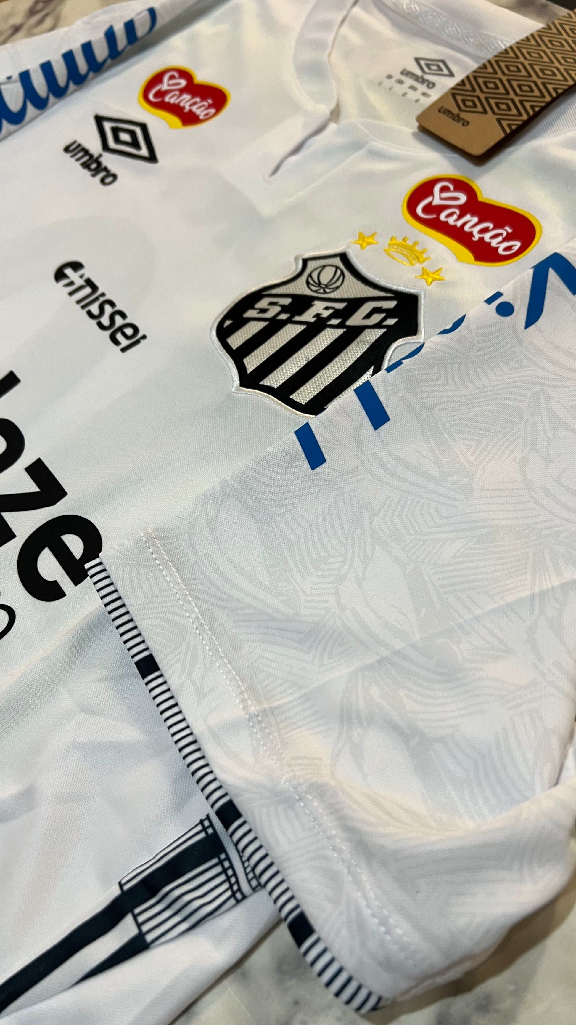 Made with a slim fit, ultralight, high-performance fabric, and a heat-sealed crest, it's identical to the one worn by the players on the field. A garment that unites tradition, modernity, and the return of one of the greatest idols in Santos' recent history.