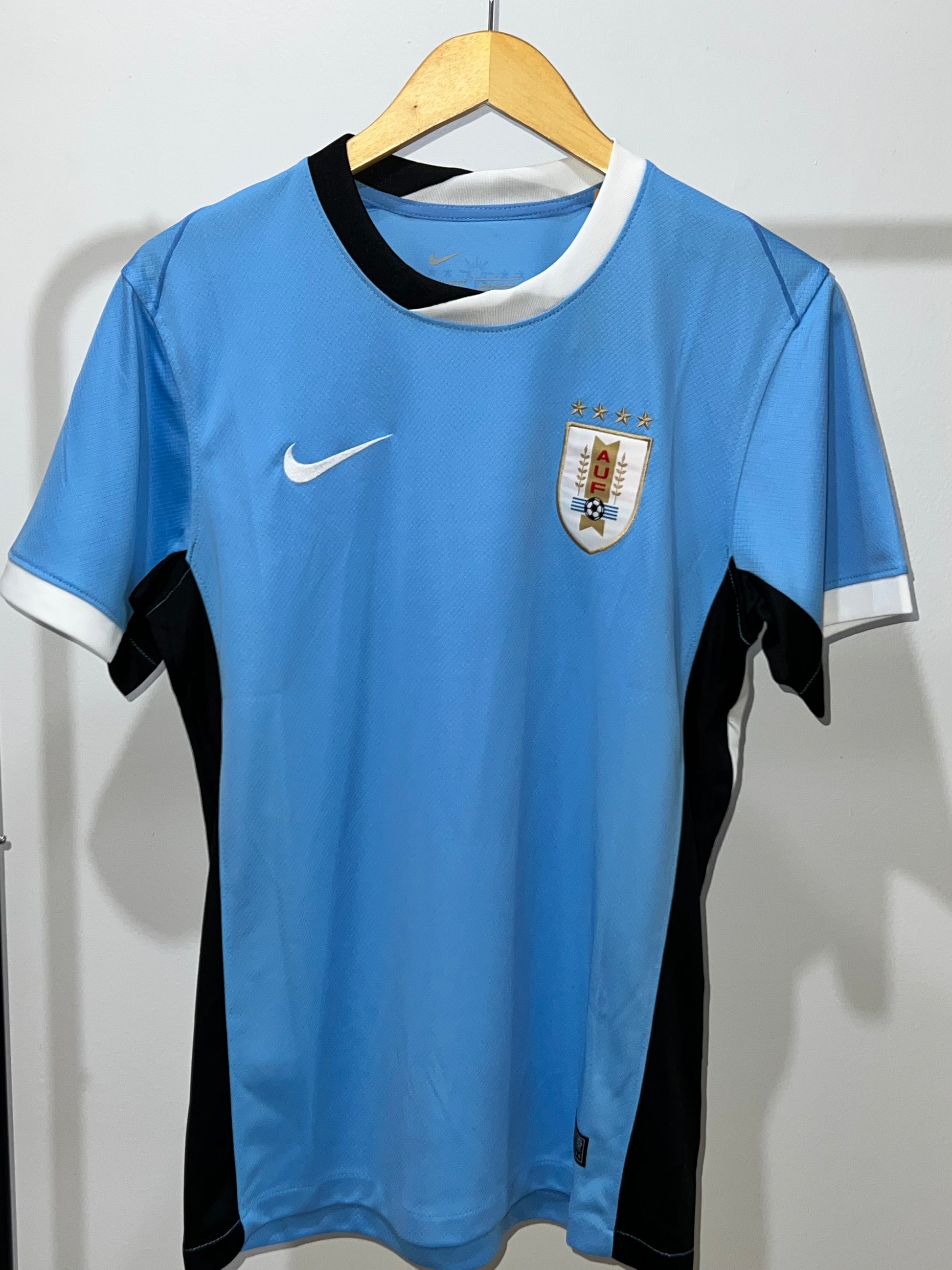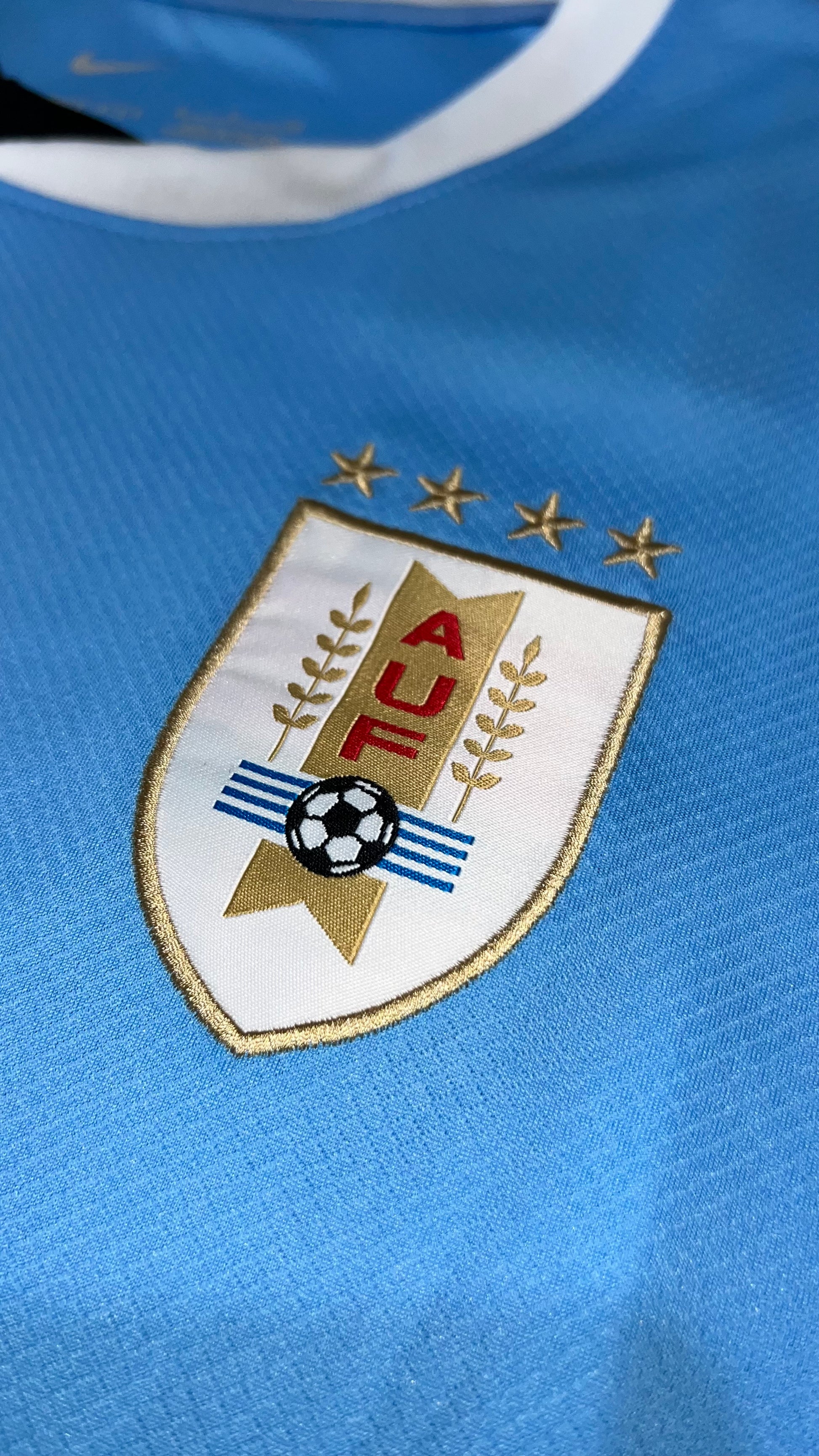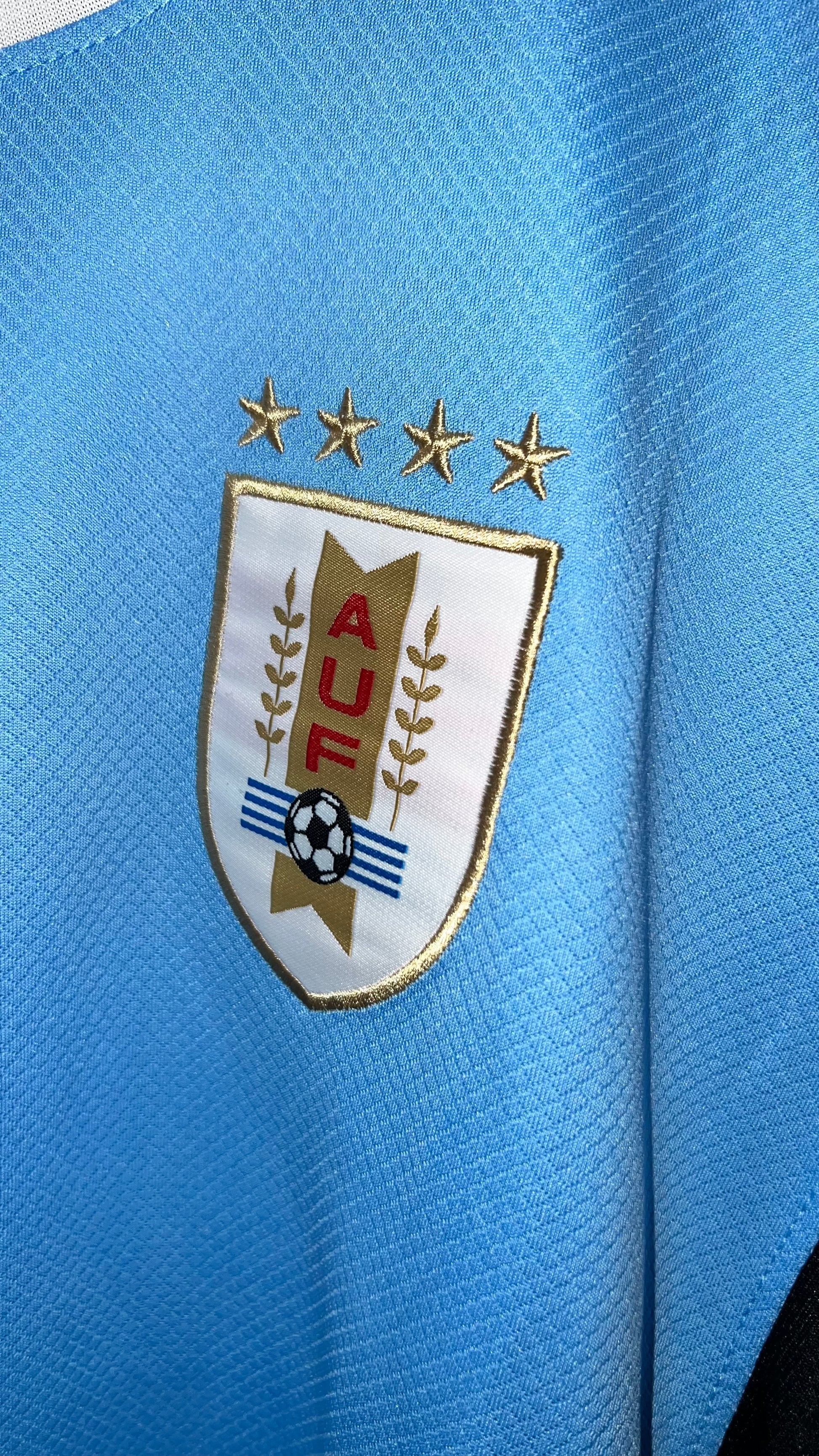 Uruguayan national team jersey in a fan version. Looser and more comfortable, with a crest and embroidered details, ideal for everyday wear and supporting in style.
