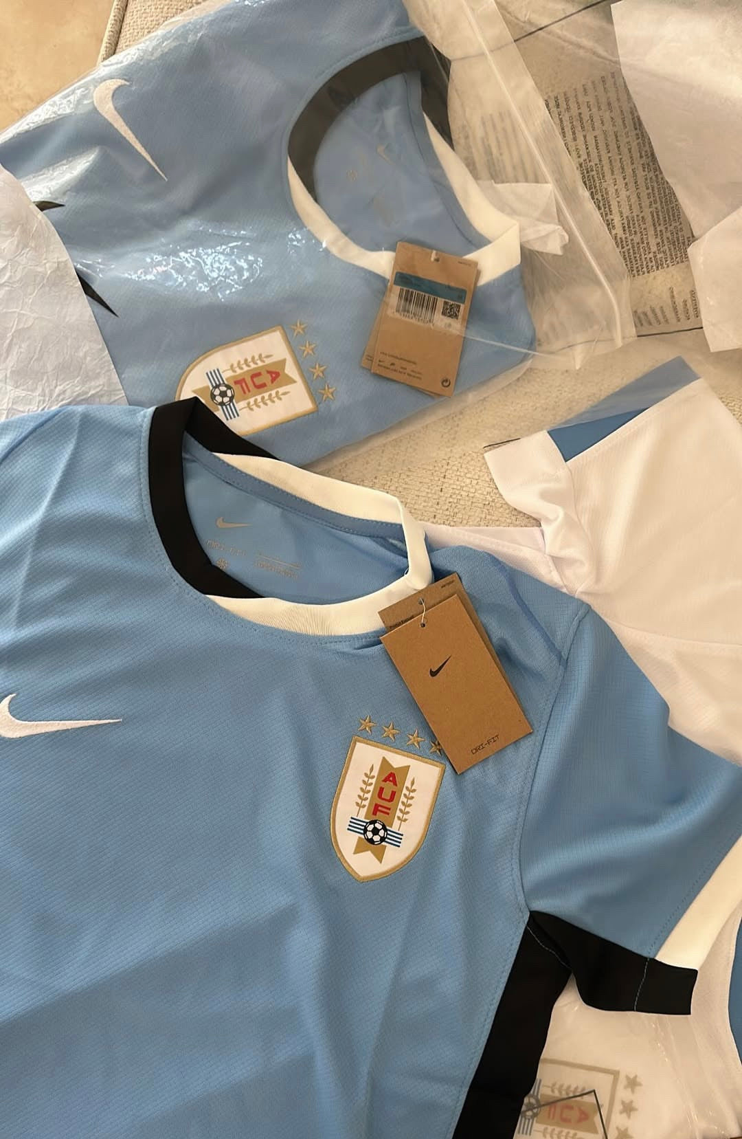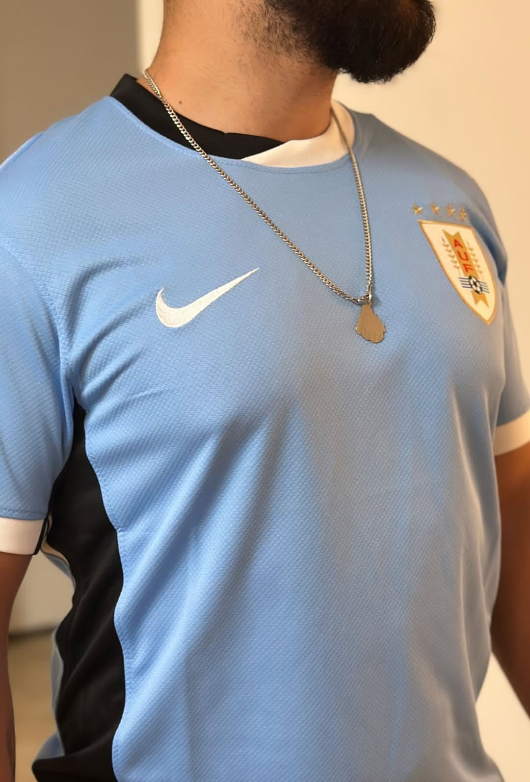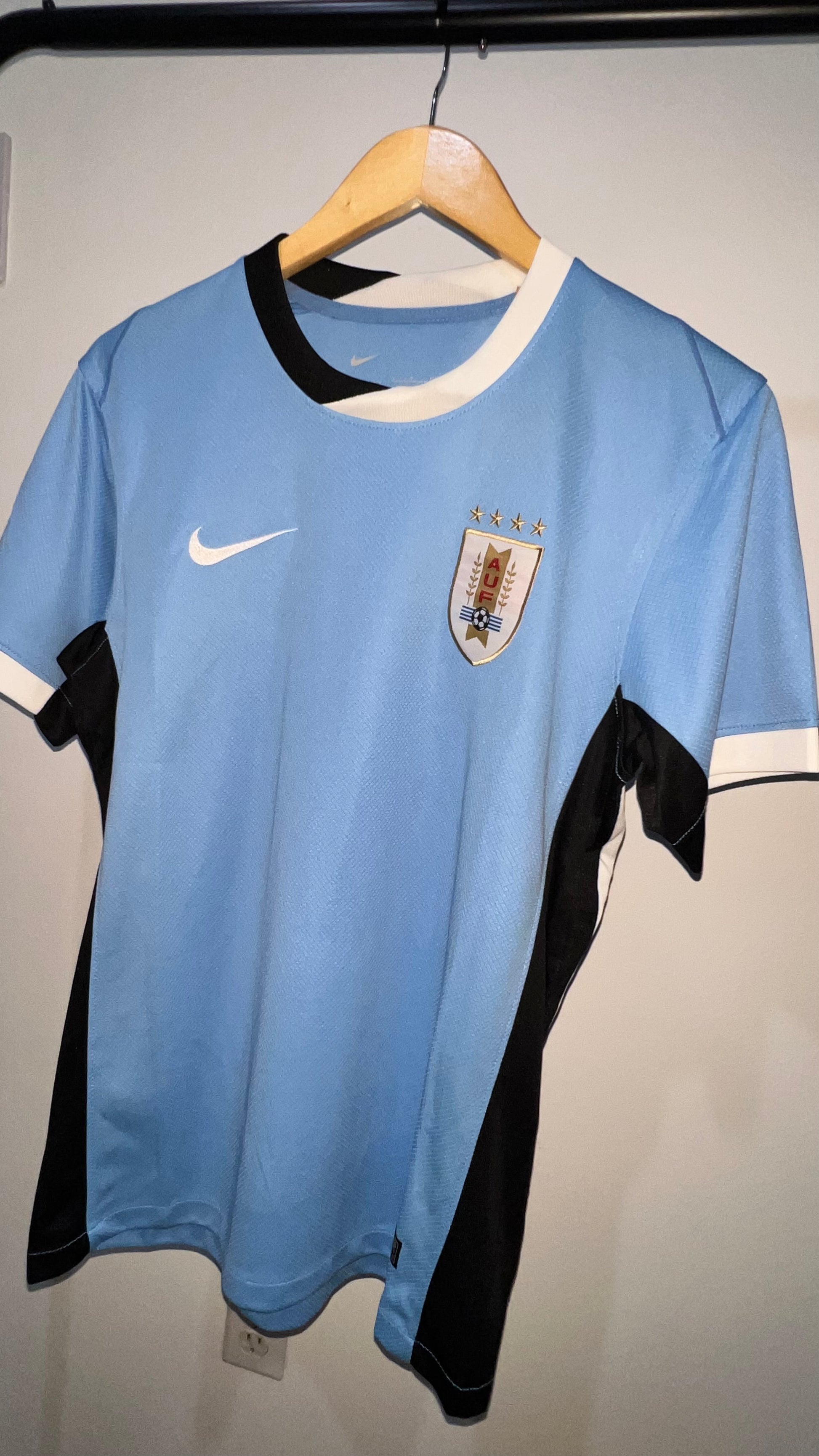 Uruguayan national team jersey in a fan version. Looser and more comfortable, with a crest and embroidered details, ideal for everyday wear and supporting in style.