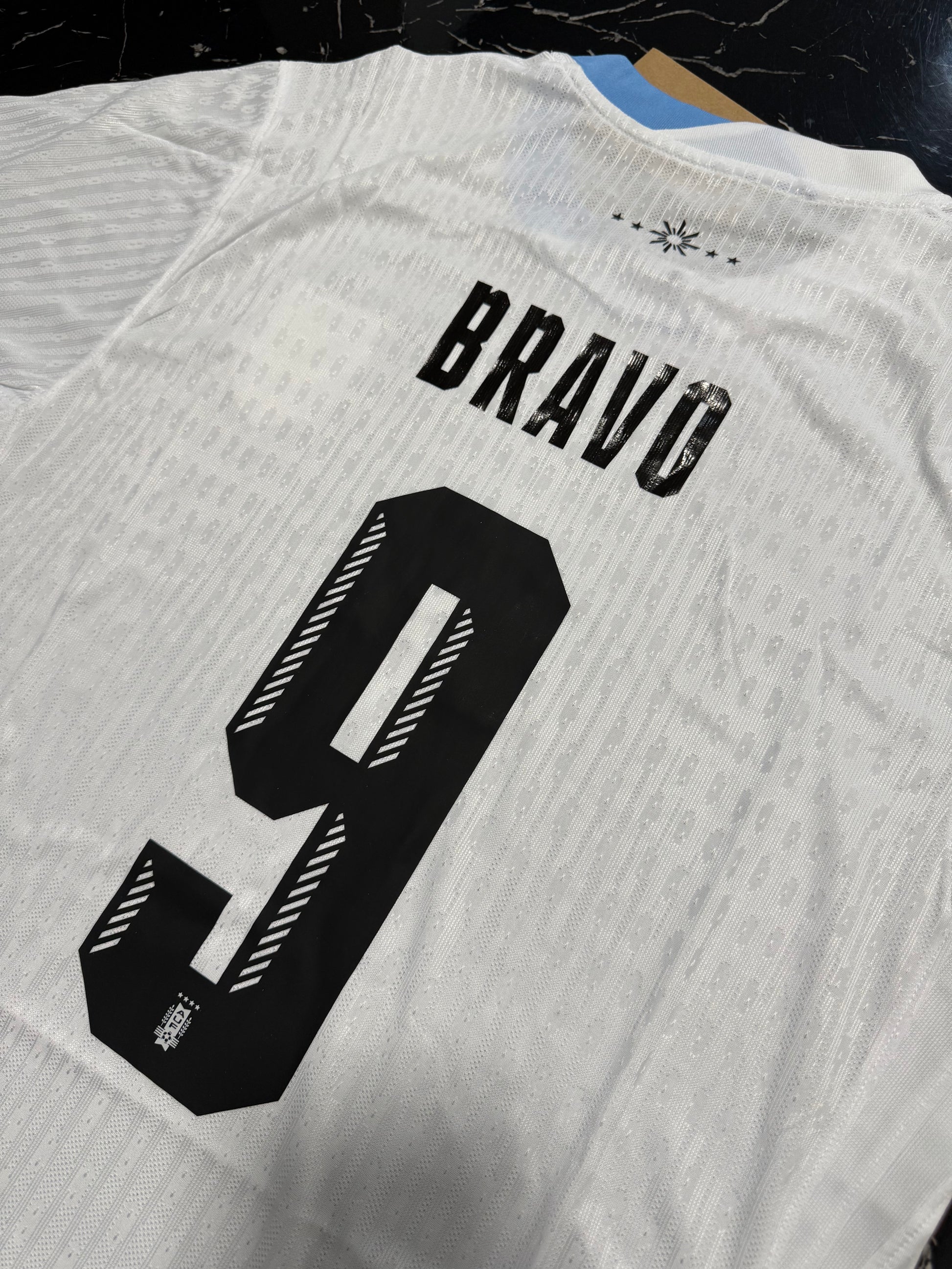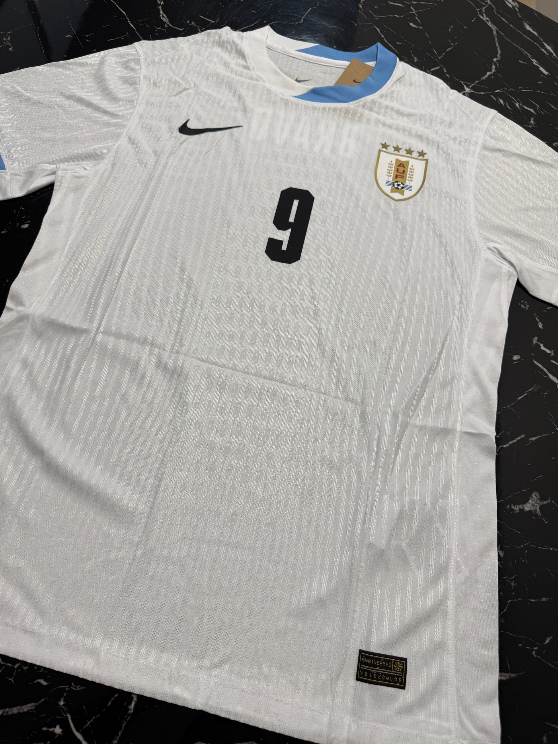 Uruguay National Team away jersey, player version. Slim-fitting, lightweight, high-performance fabric, and heat-sealed details, identical to the one worn by the players on the field.