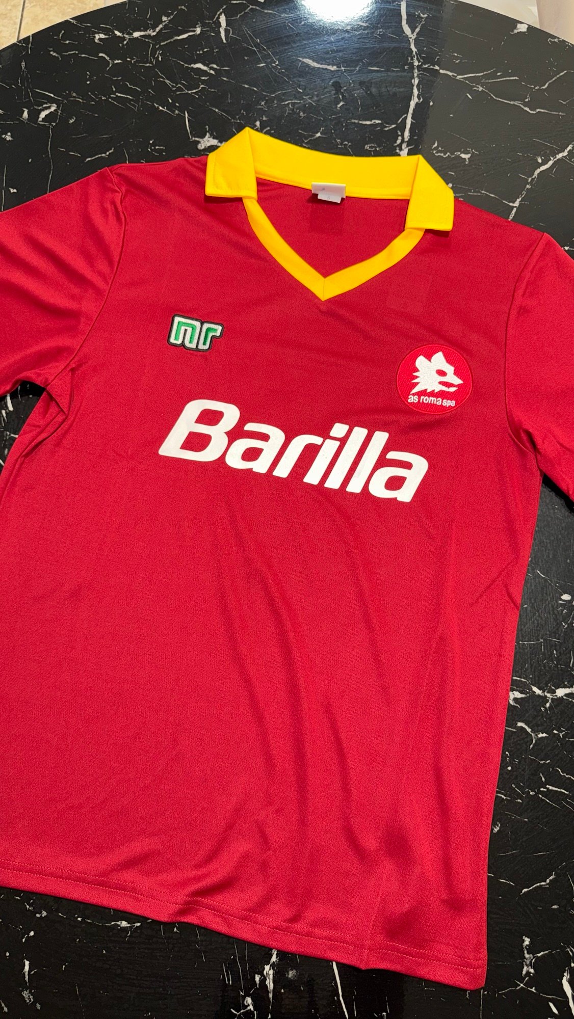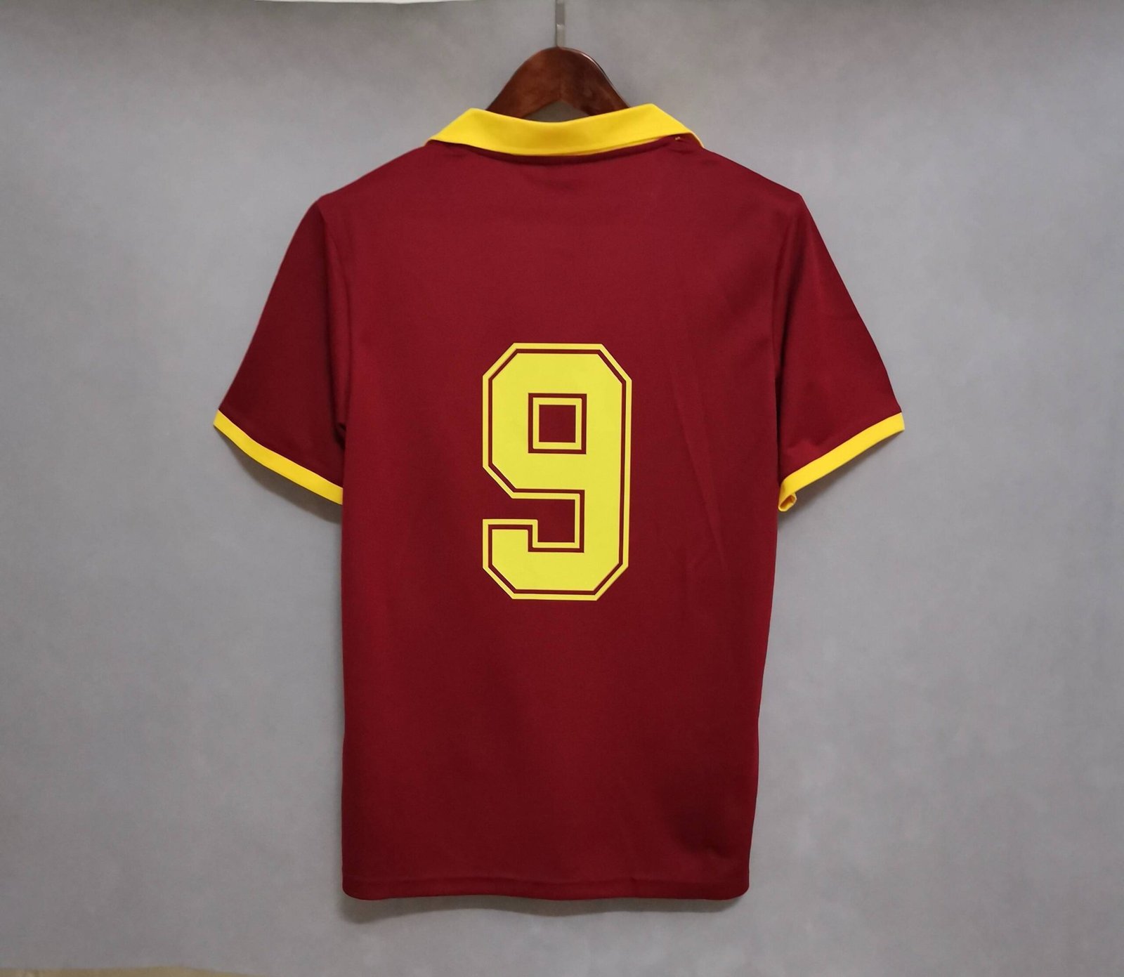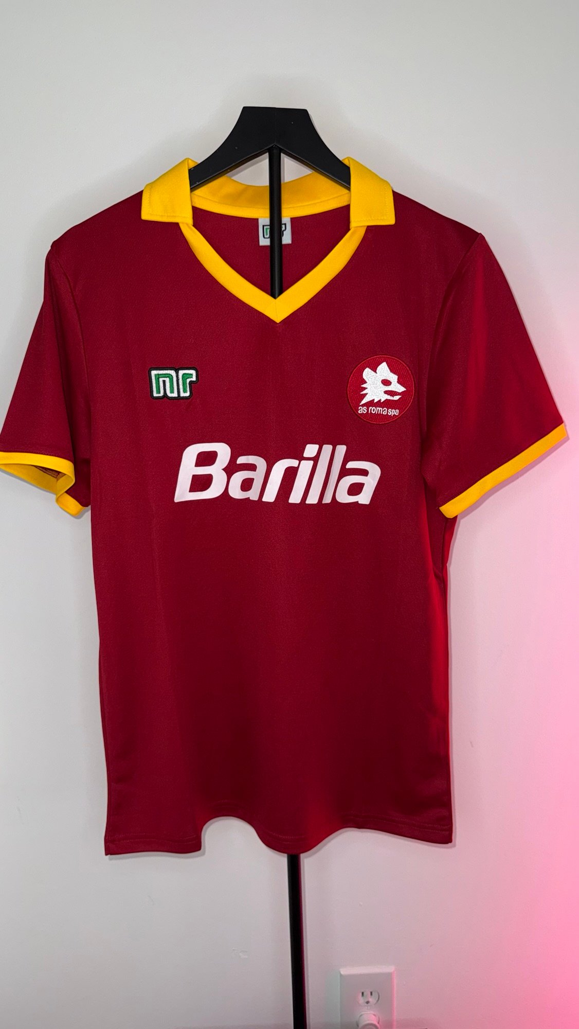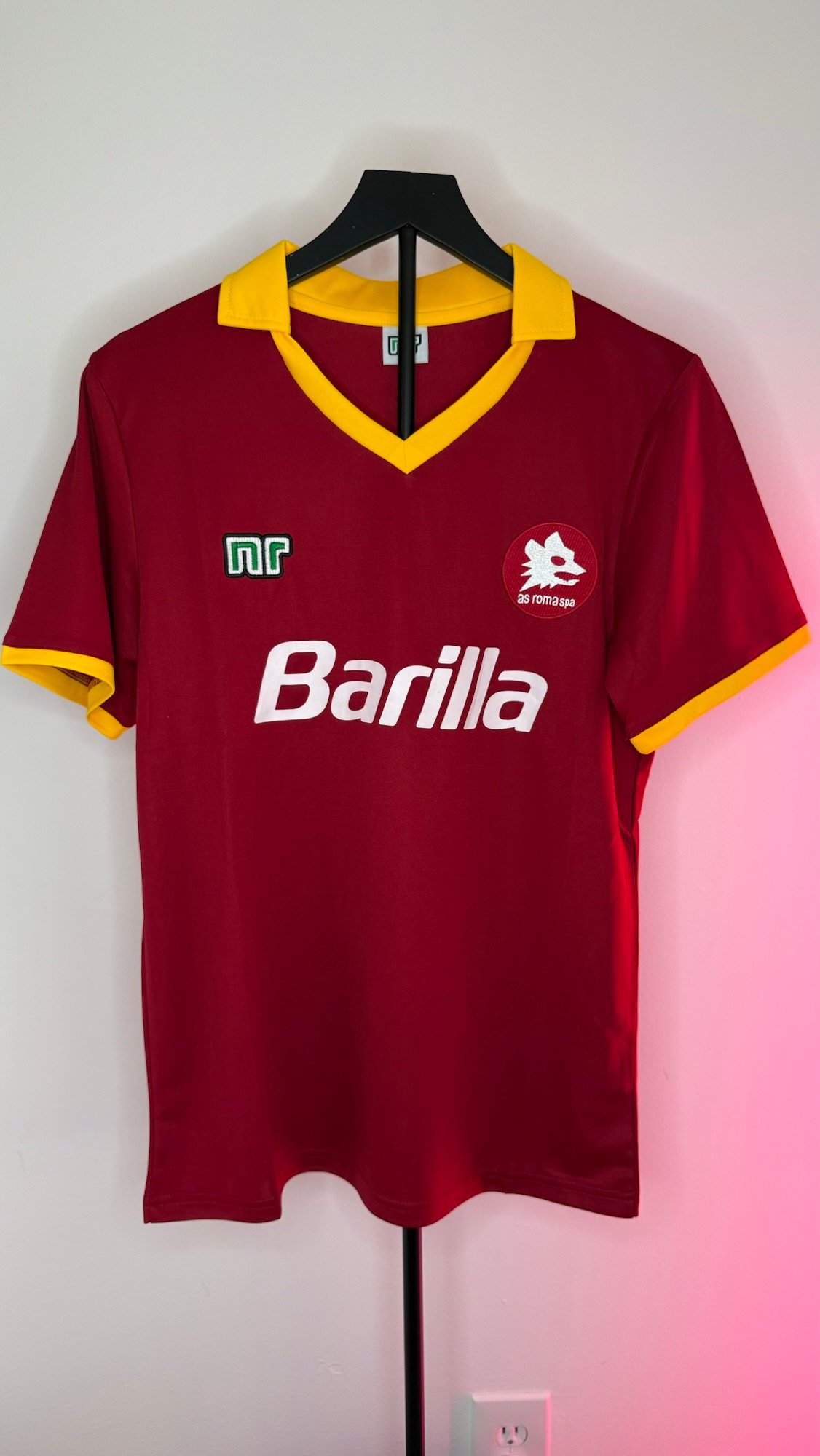 La camiseta local de la AS Roma 1989/90 es una pieza clásica del fútbol italiano de finales de los años 80. Presenta la tradicional base roja (giallorossa) con detalles en amarillo, un diseño limpio y elegante que representa una etapa muy reconocible de la historia del club.