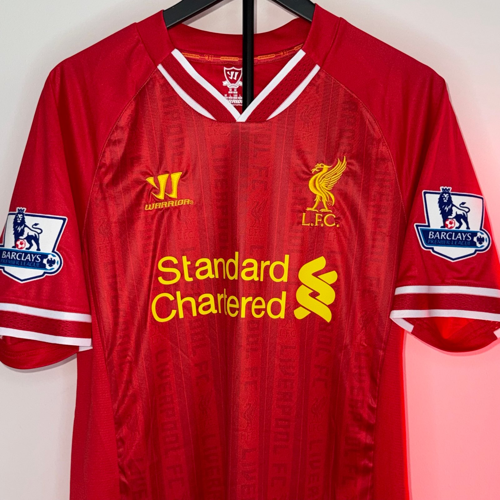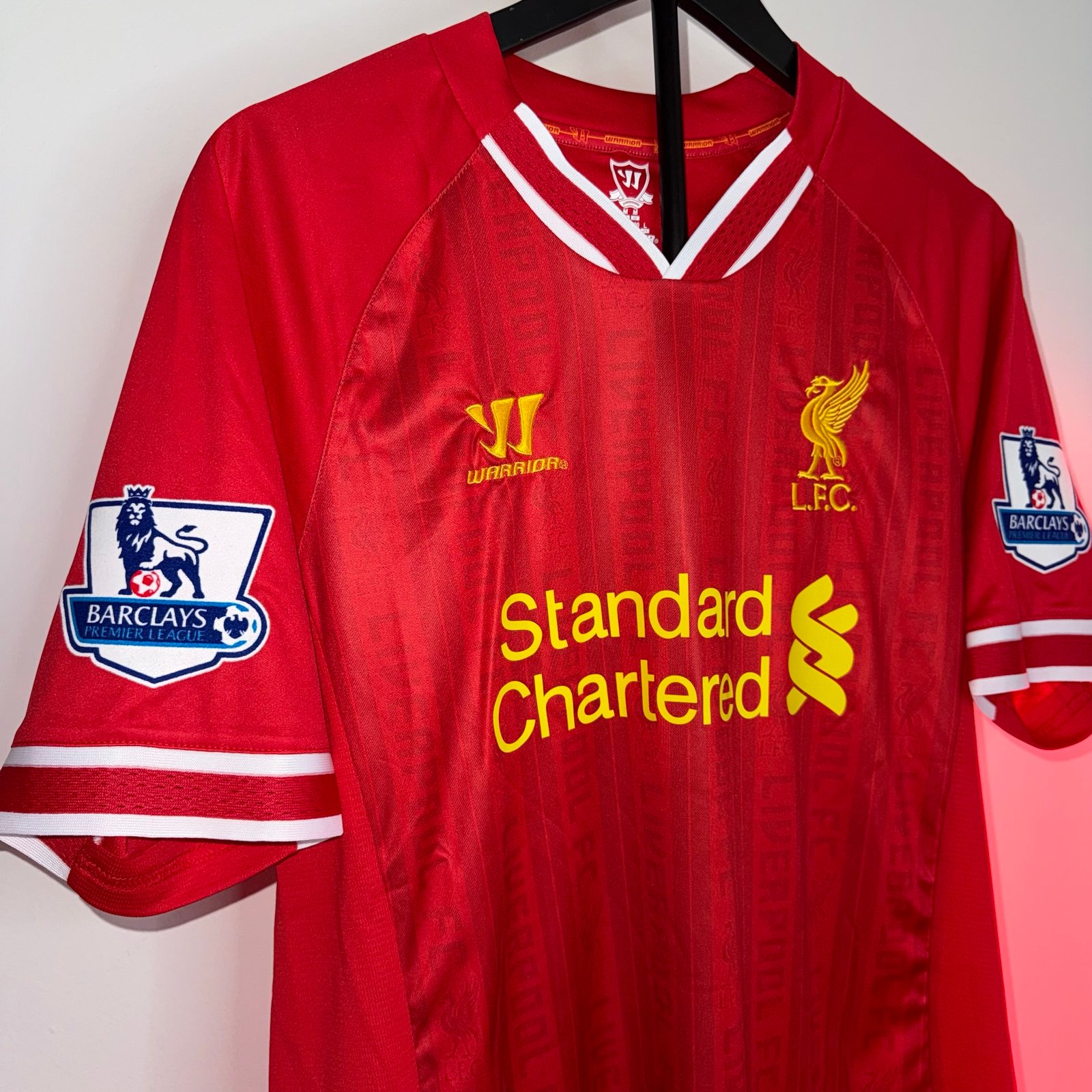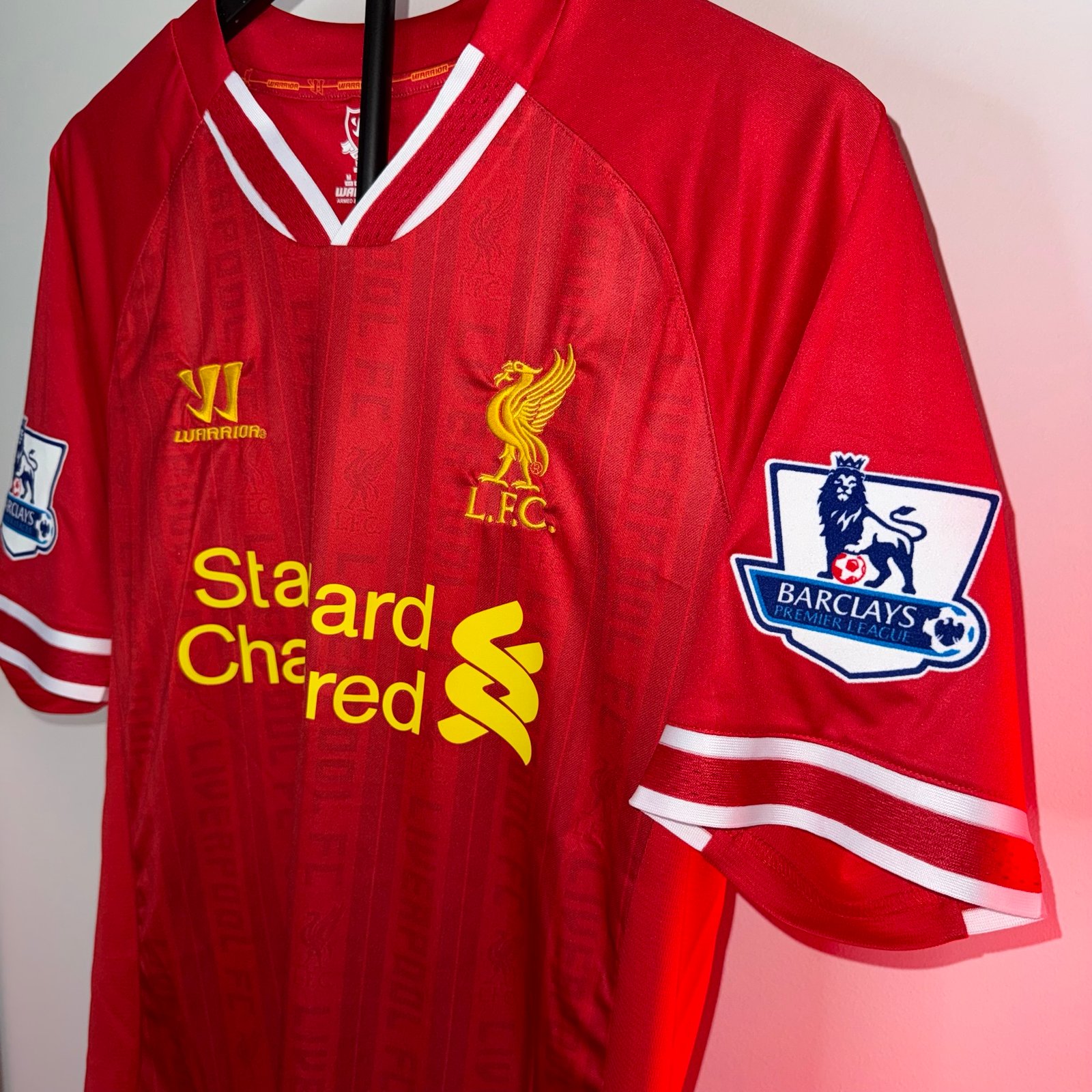 La camiseta local del Liverpool 2012/13 es una de las más recordadas de la etapa reciente del club, marcada por el nivel extraordinario de Luis Suárez, quien protagonizó una de las temporadas individuales más impactantes en la Premier League.