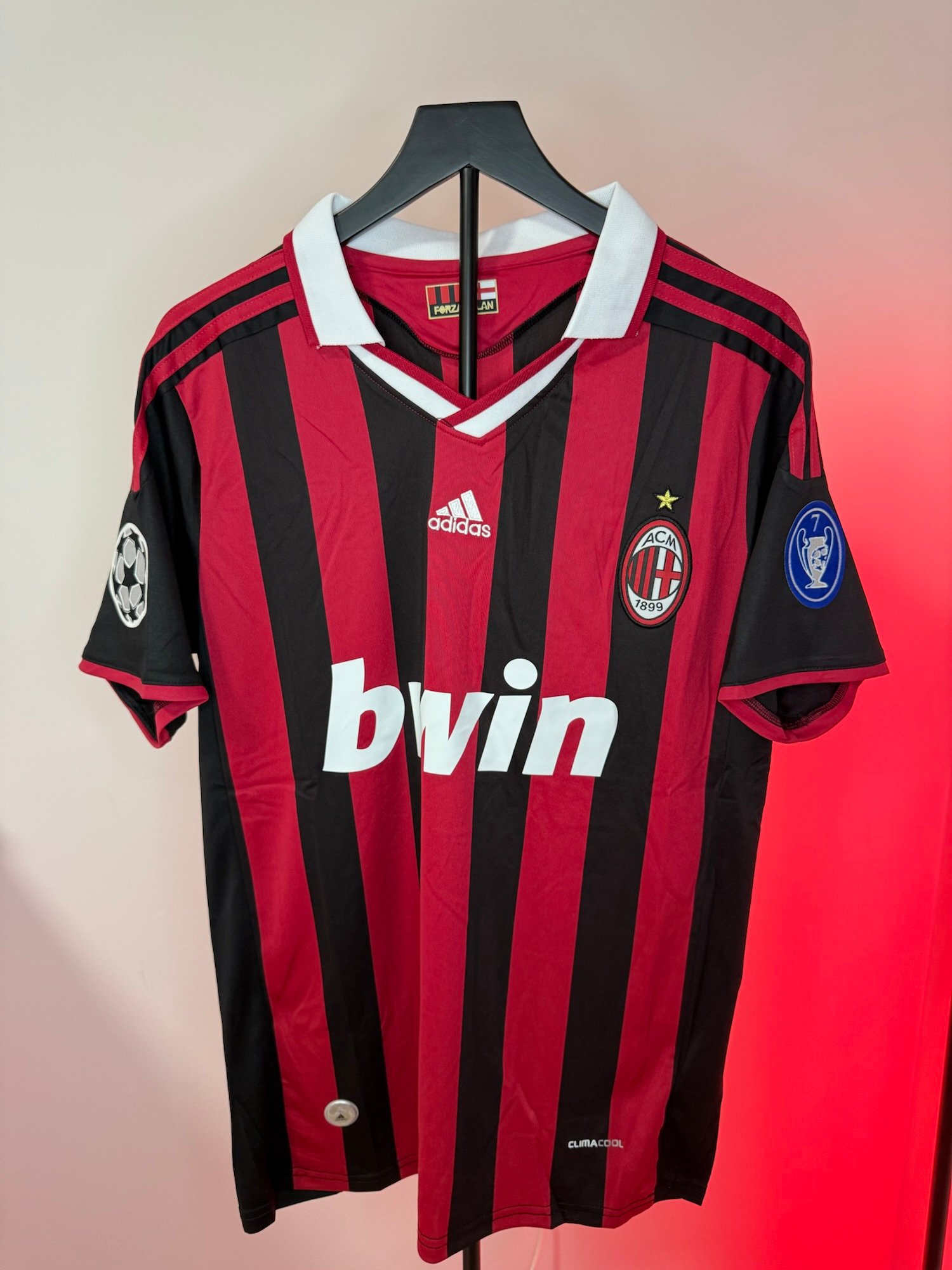 Camiseta retro AC Milan 2009/10 local. Clásico diseño rojinegro con rayas verticales, sponsor bwin y cuello blanco estilo polo, usada en la era de figuras como Ronaldinho, Pirlo, Seedorf e Inzaghi.