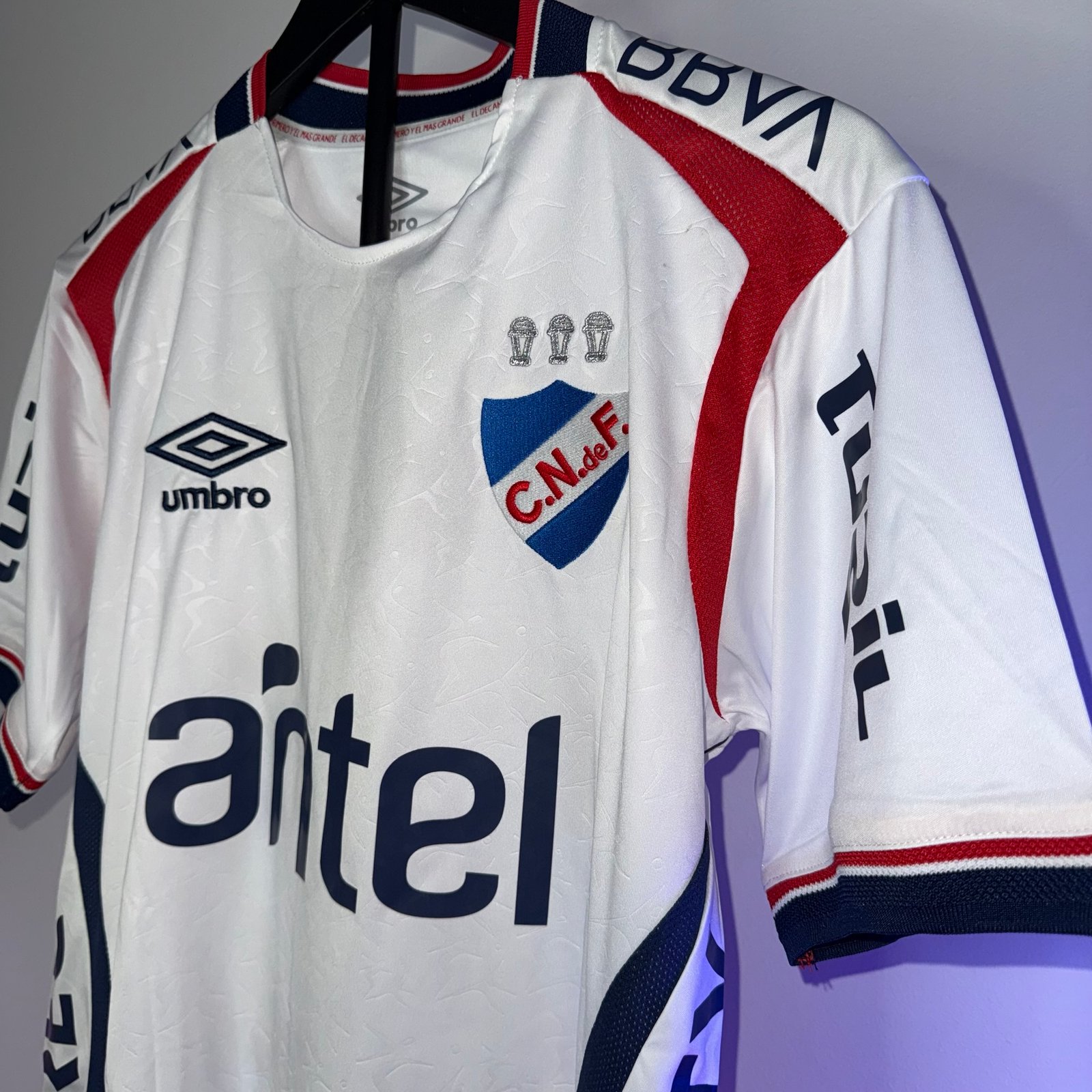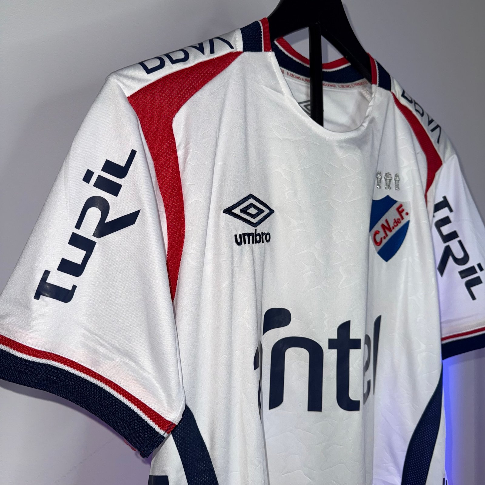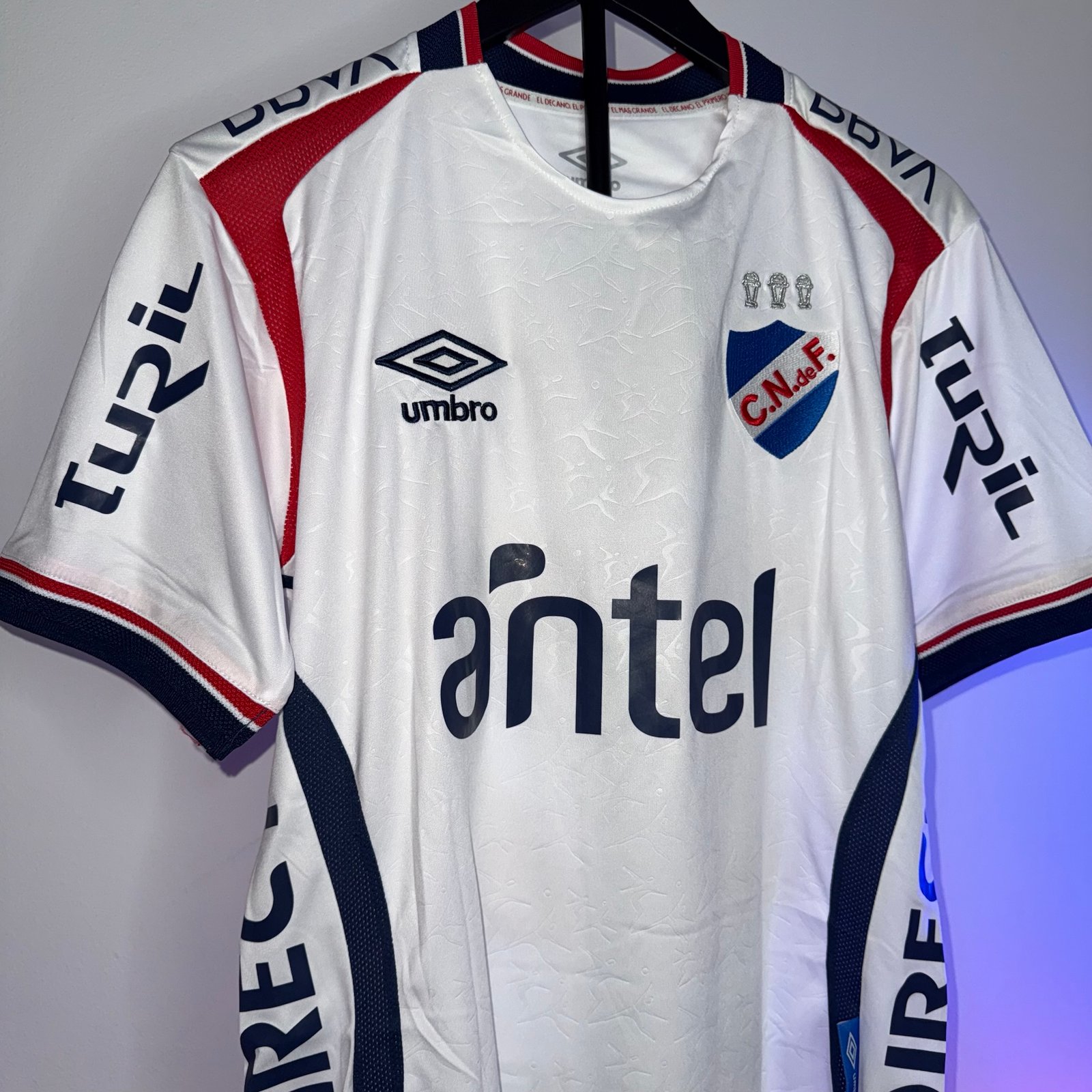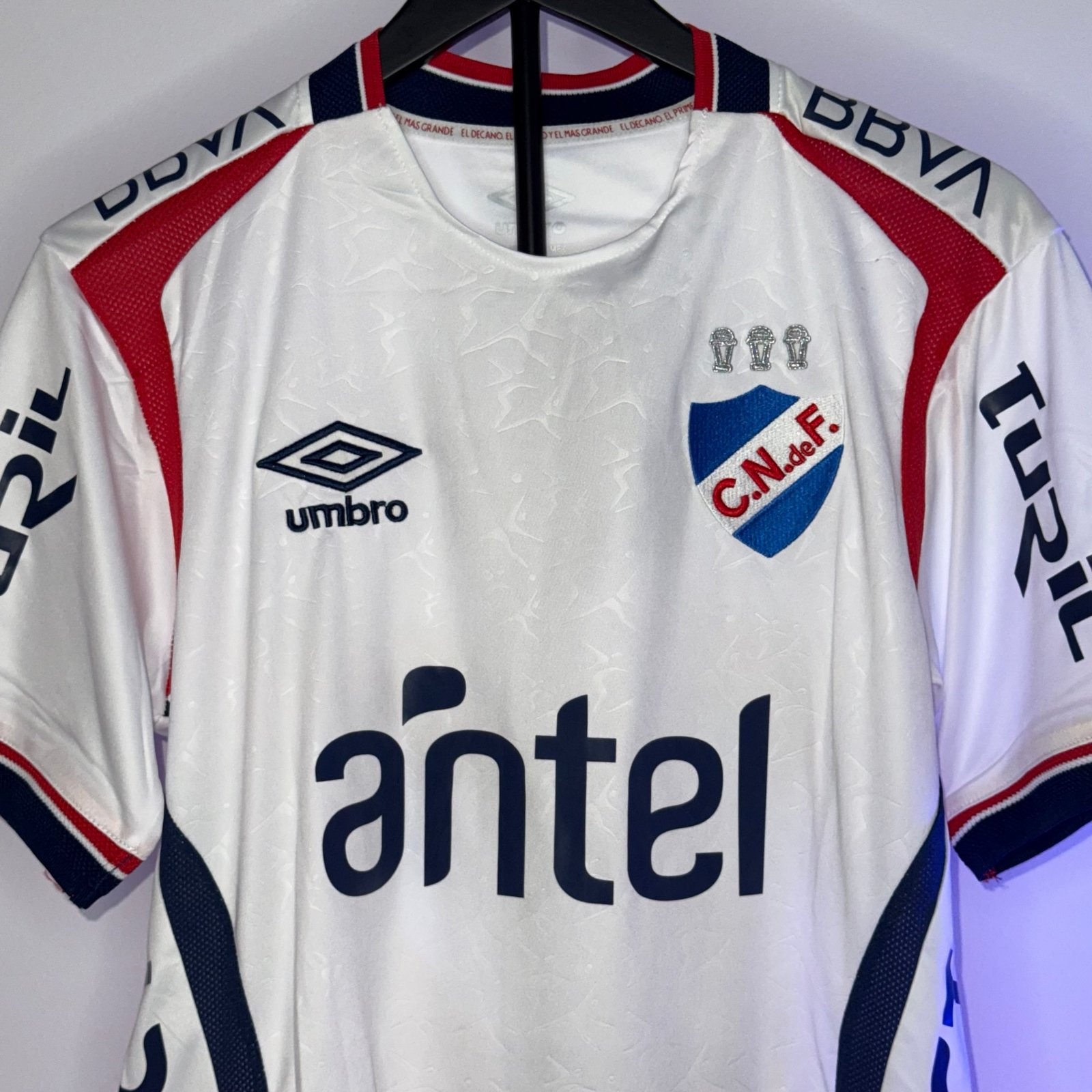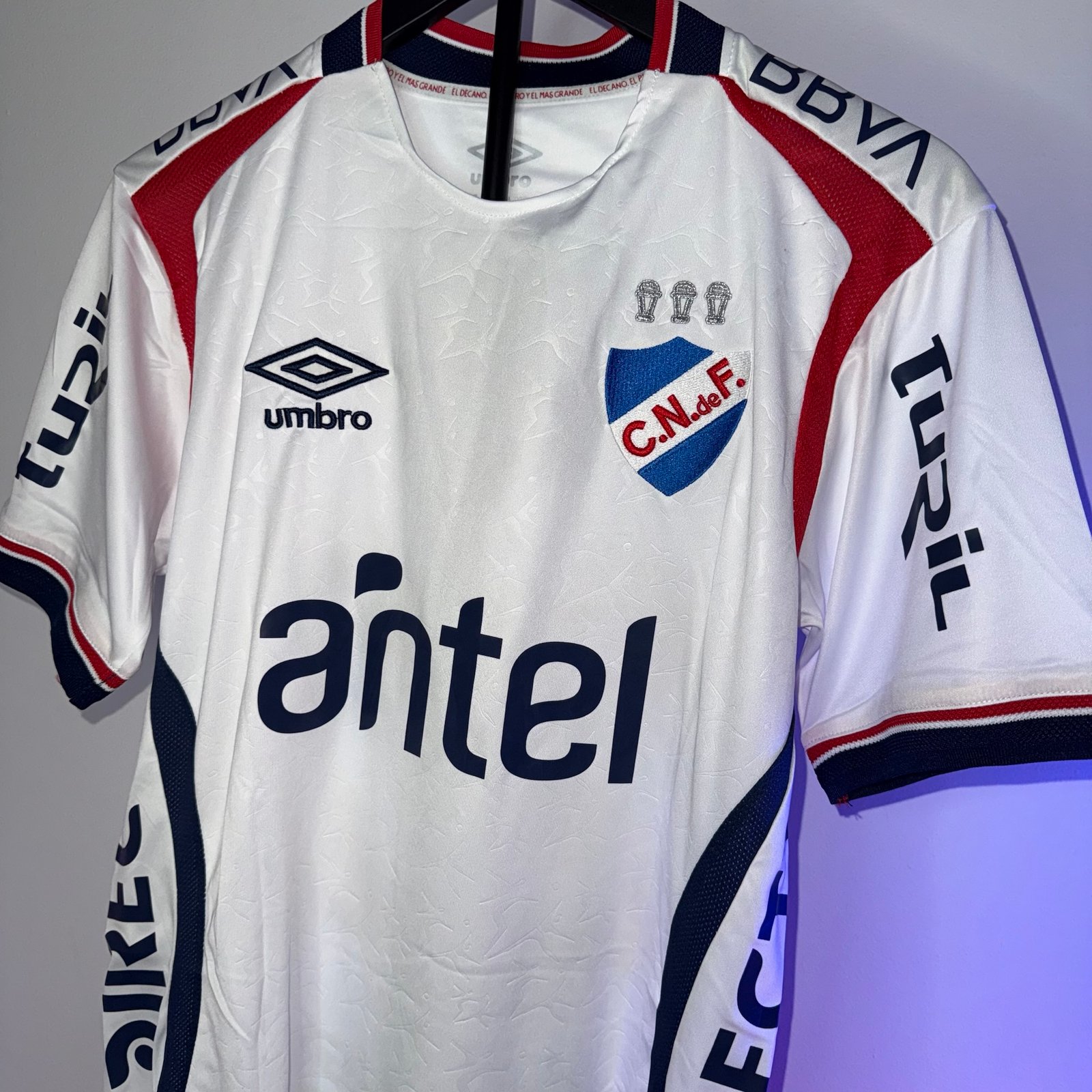 La camiseta de Nacional 2025 Local – Versión Fan mantiene la esencia clásica del club con una base blanca limpia, combinada con detalles en rojo y azul que representan la identidad histórica del Club Nacional de Football.