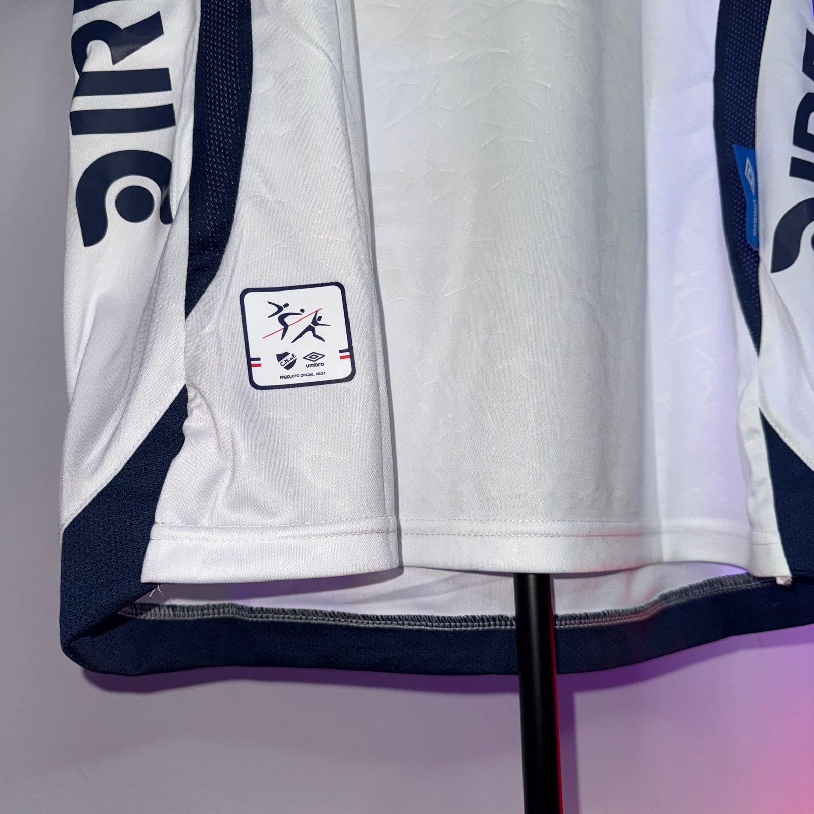Es la camiseta titular de la temporada 2025, respetando la tradición tricolor pero con cortes y detalles modernos.