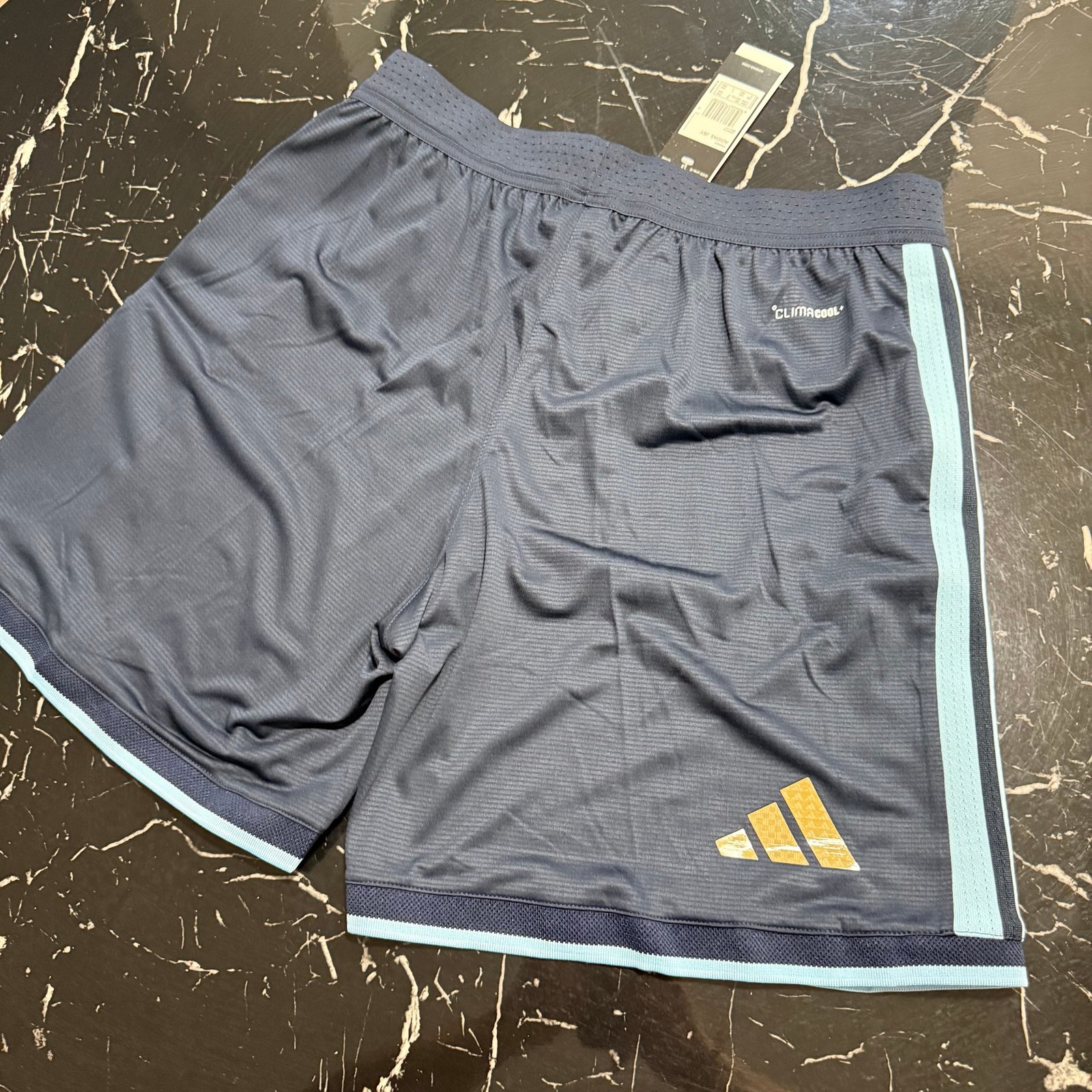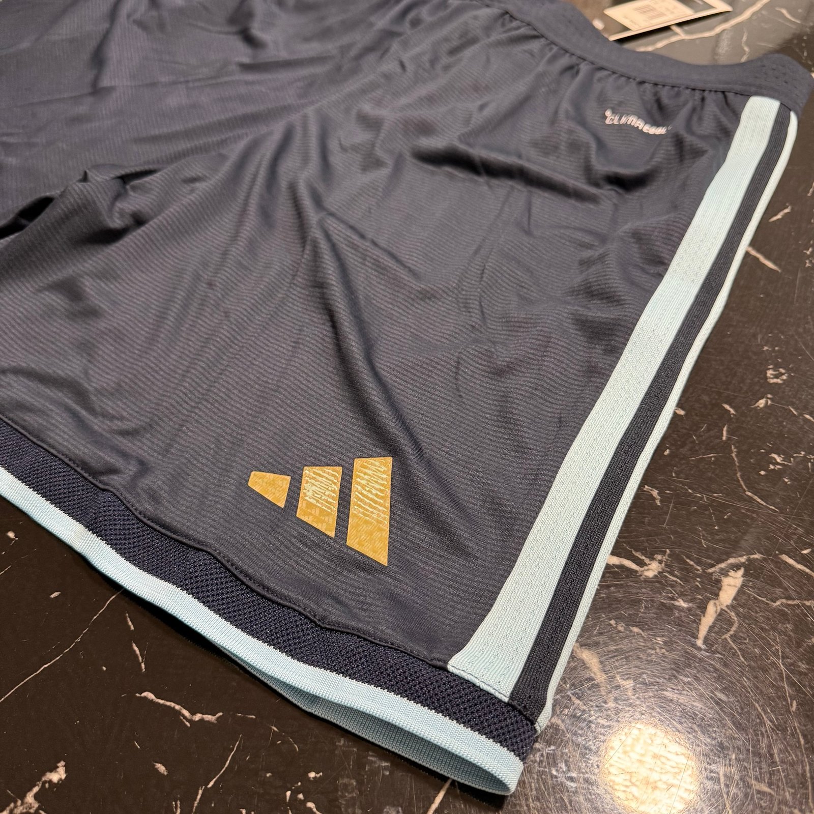 En la parte trasera se incorpora el detalle Climacool+, visible en el tejido, que favorece la transpirabilidad y la evaporación del sudor. El logo dorado de la marca, también termoaplicado, mantiene coherencia estética con el escudo.