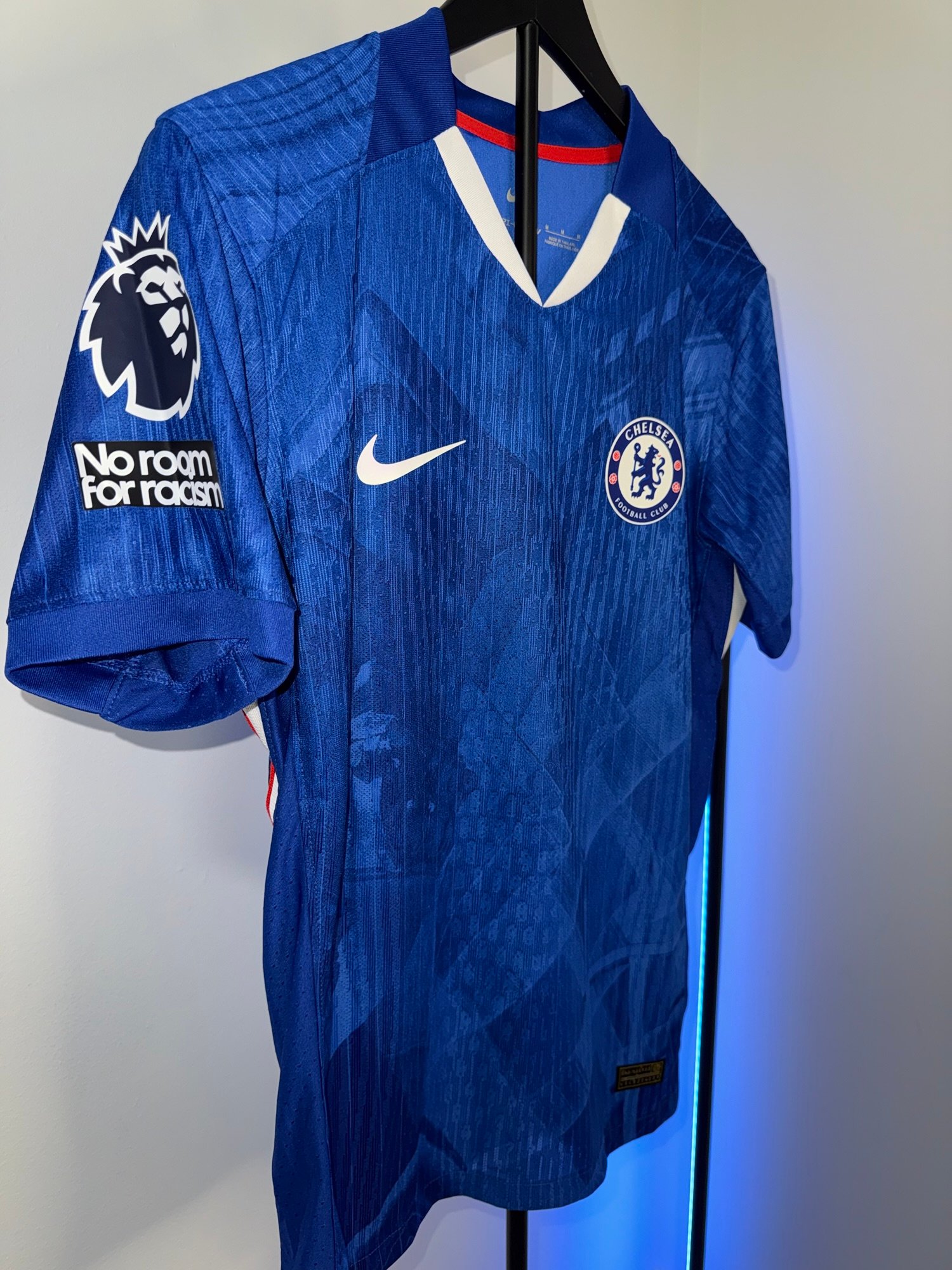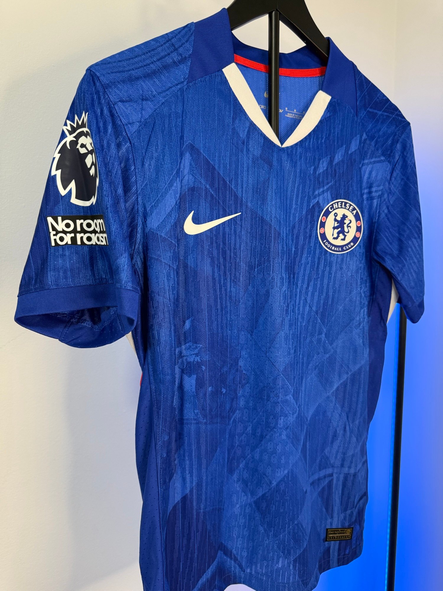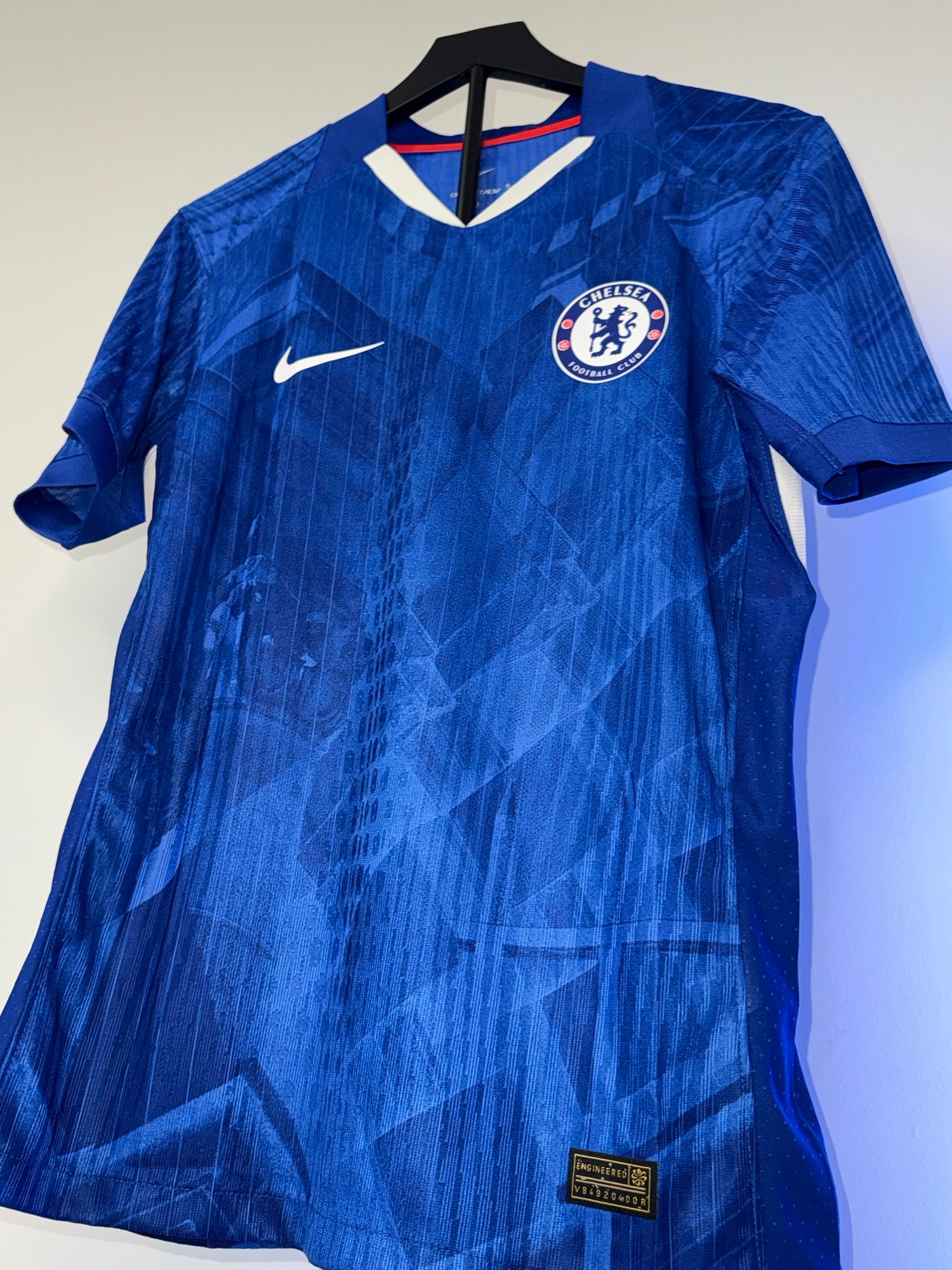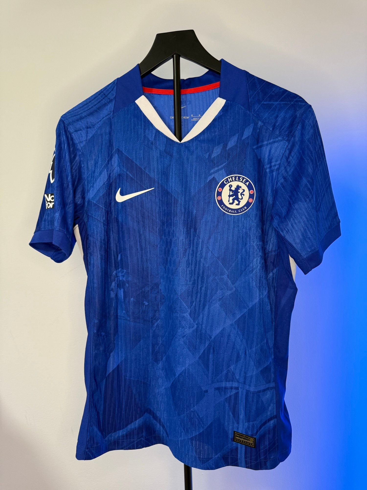 Camiseta local del Chelsea 2025/26 en versión jugador, con calce profesional y diseño clásico.