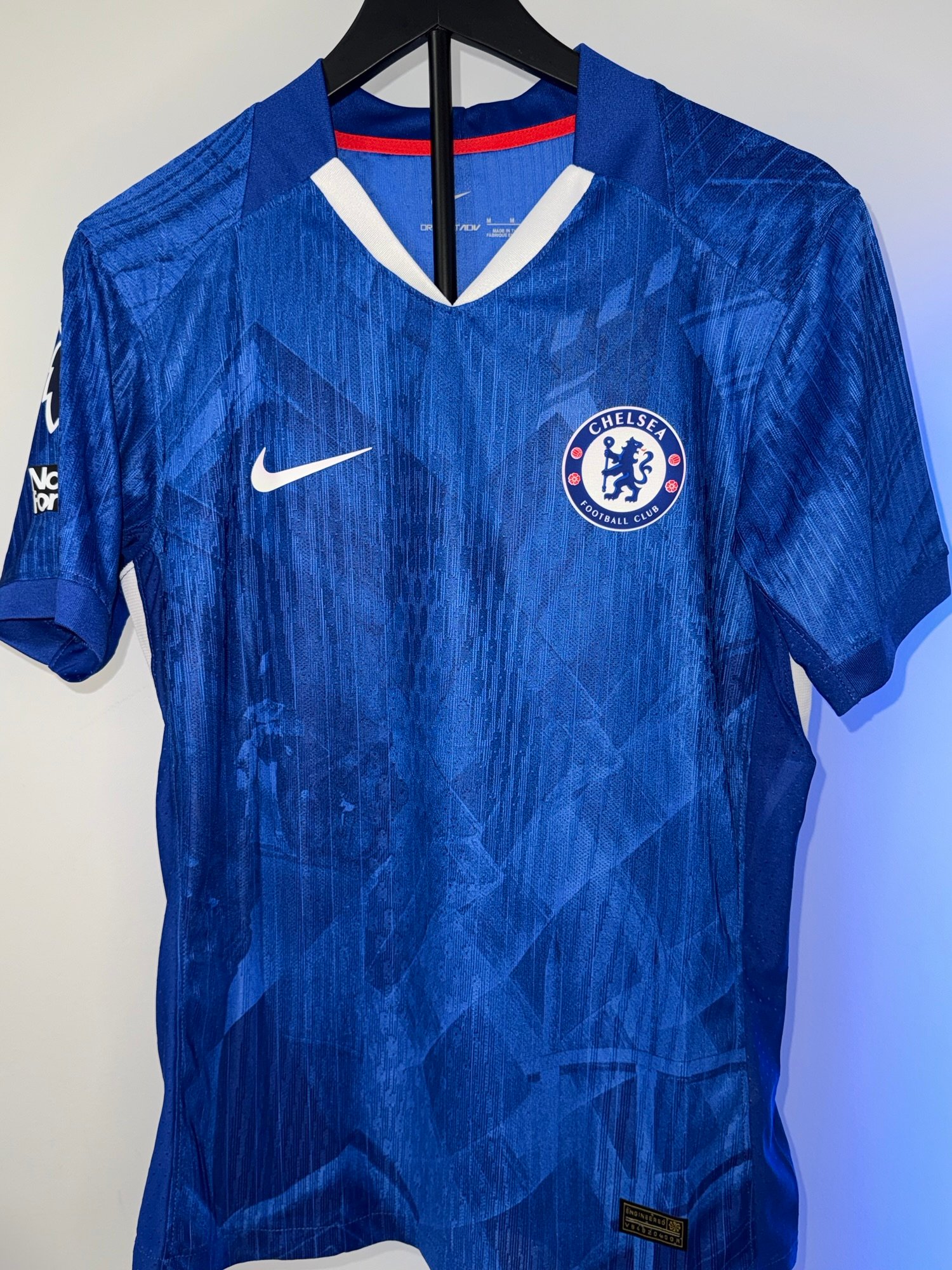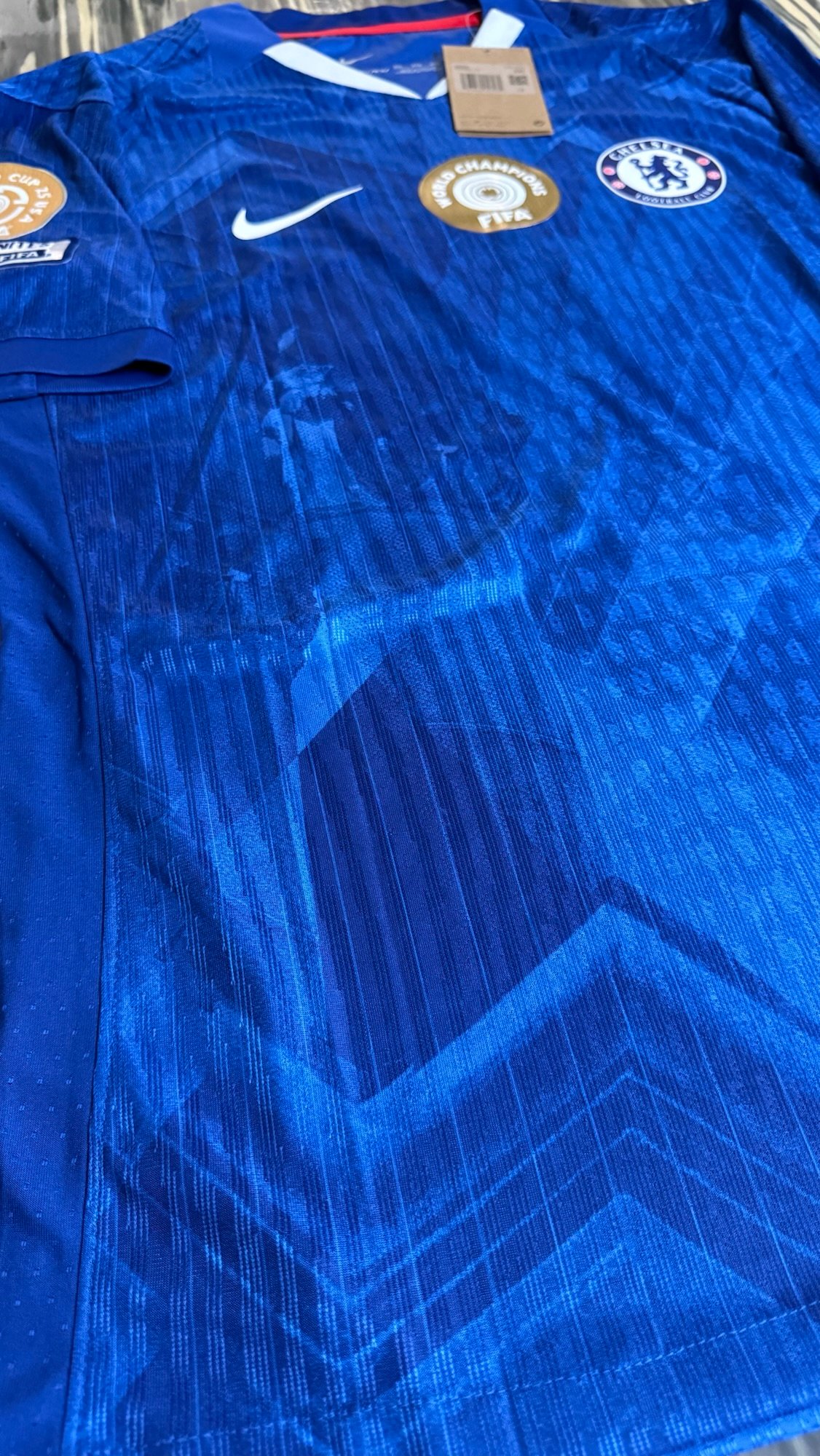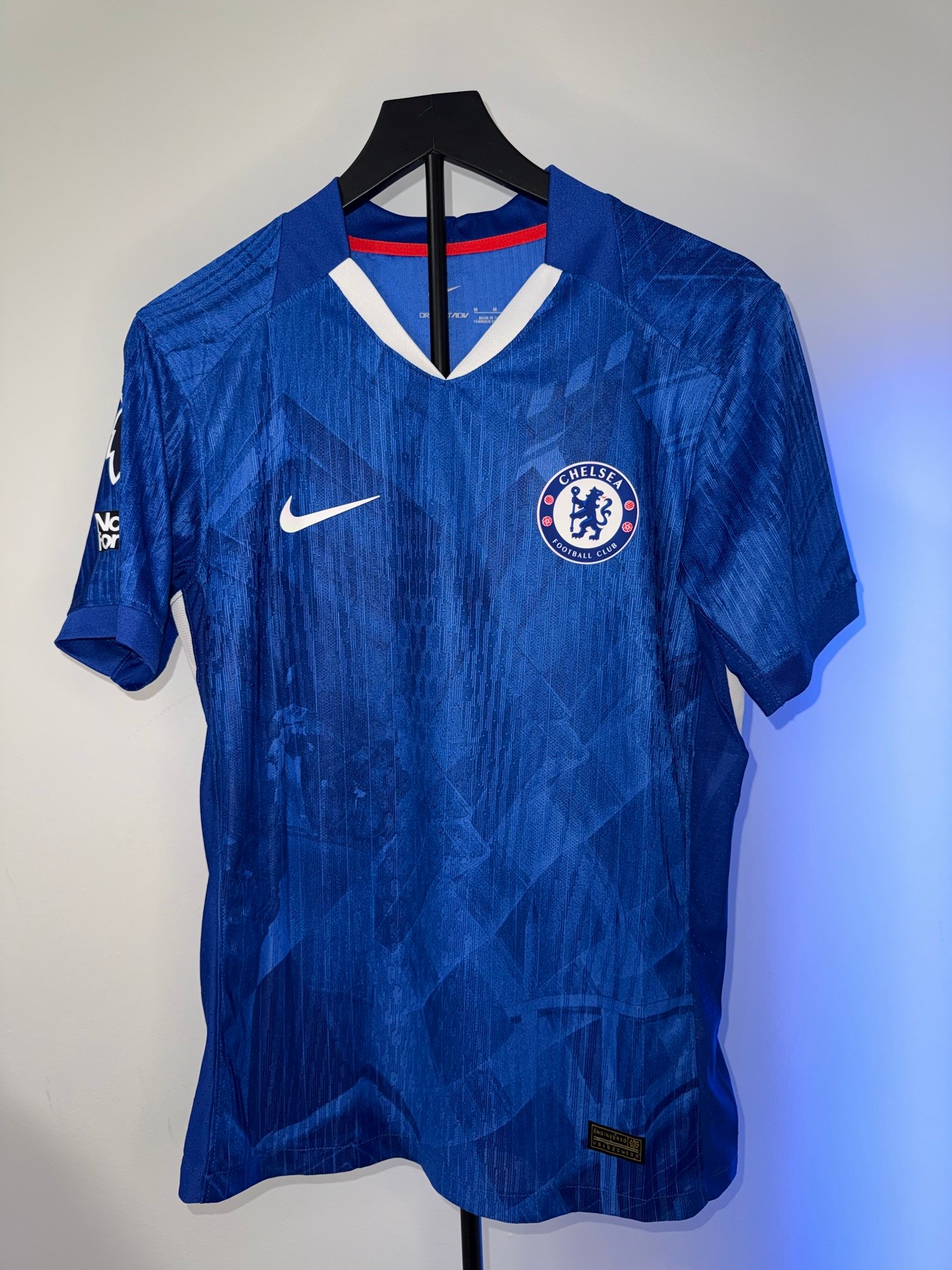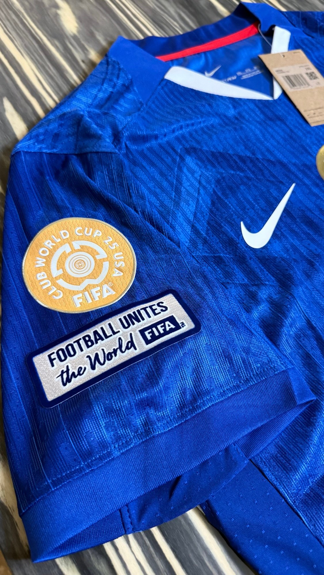 Camiseta local del Chelsea 2025/26 en versión jugador, con calce profesional y diseño clásico.
