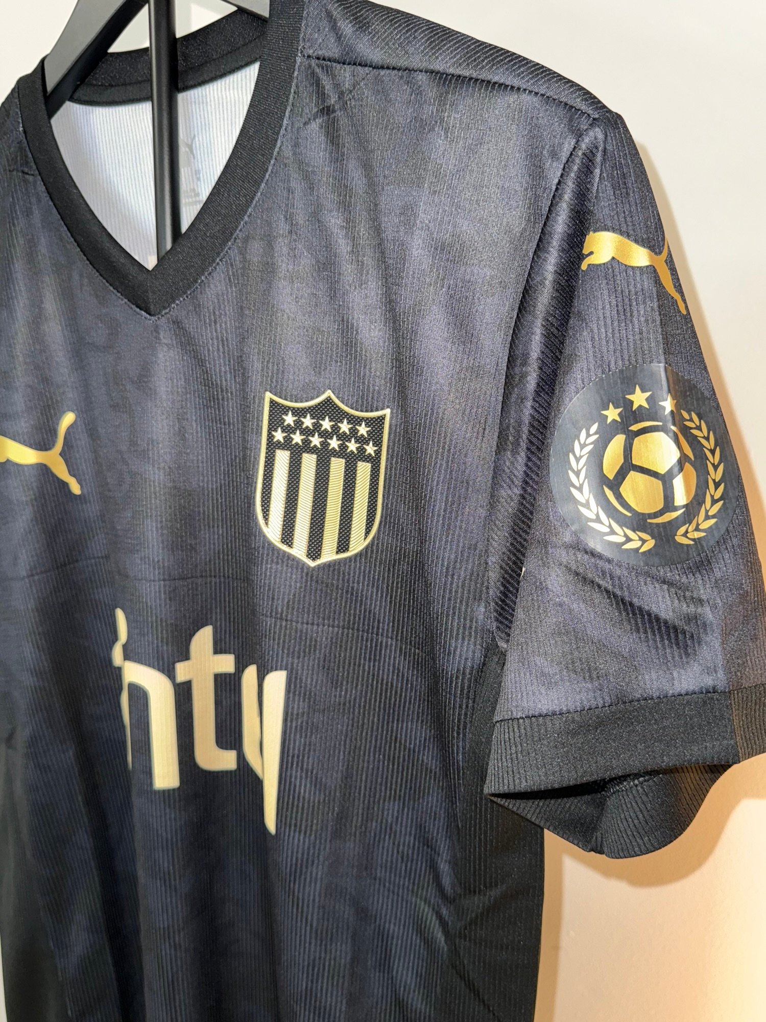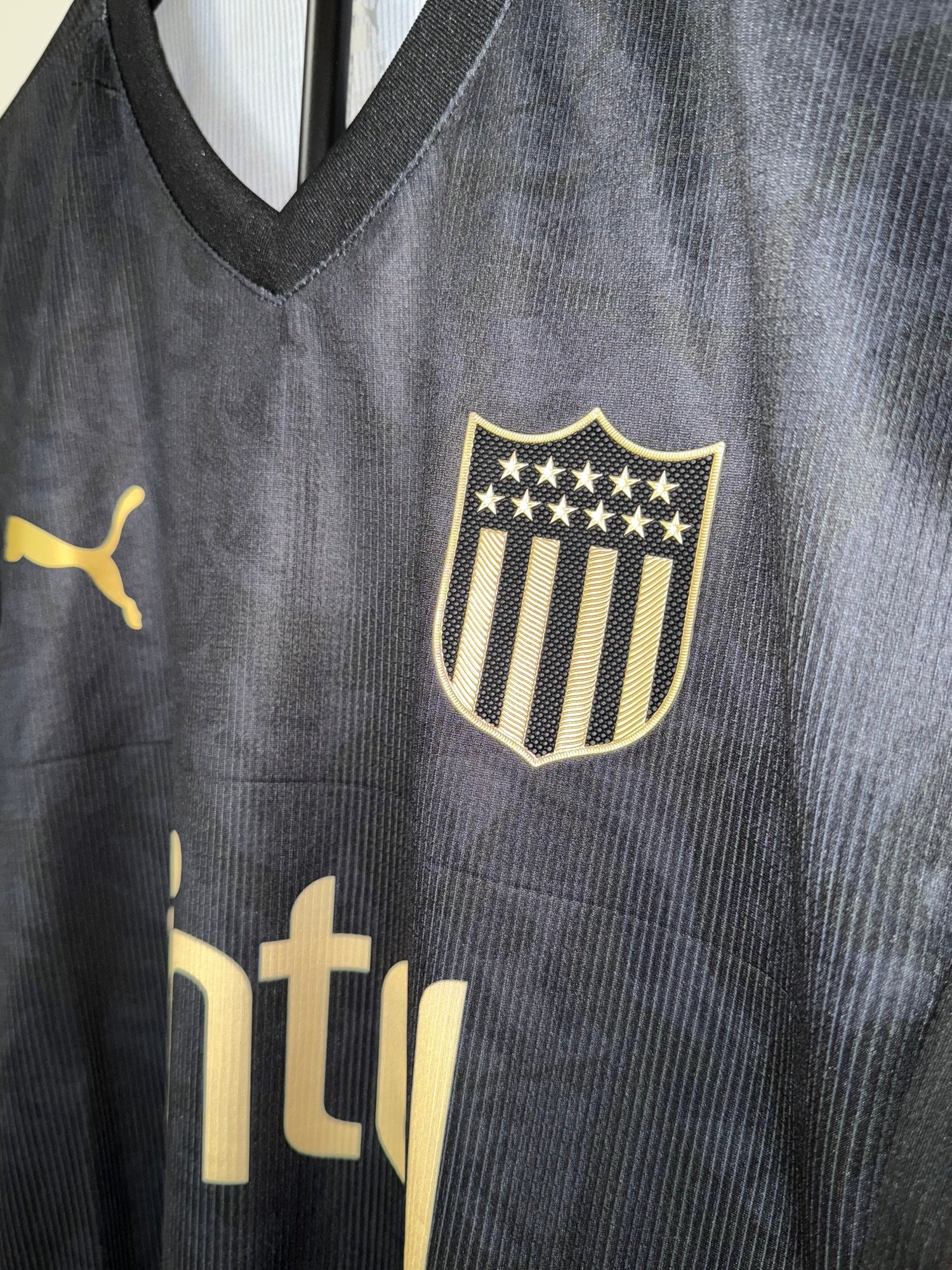 Este modelo fue utilizado por PeƱarol durante la temporada 2025 como camiseta visitante en competiciones oficiales, ofreciendo una alternativa clara y contundente al diseƱo local tradicional. El contraste entre el negro y el amarillo refuerza el carƔcter del club y la hace una de las camisetas mƔs versƔtiles del aƱo.