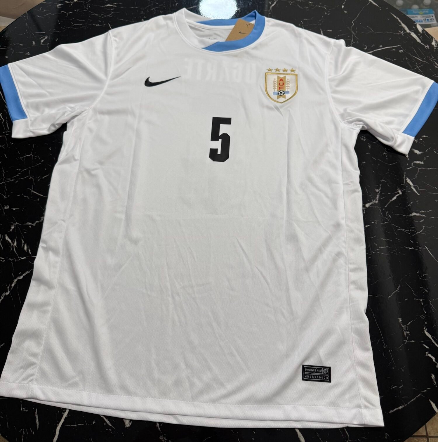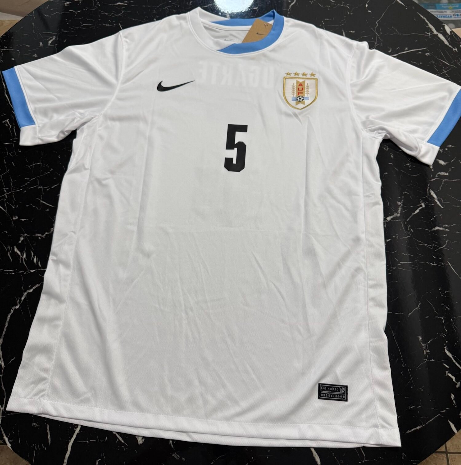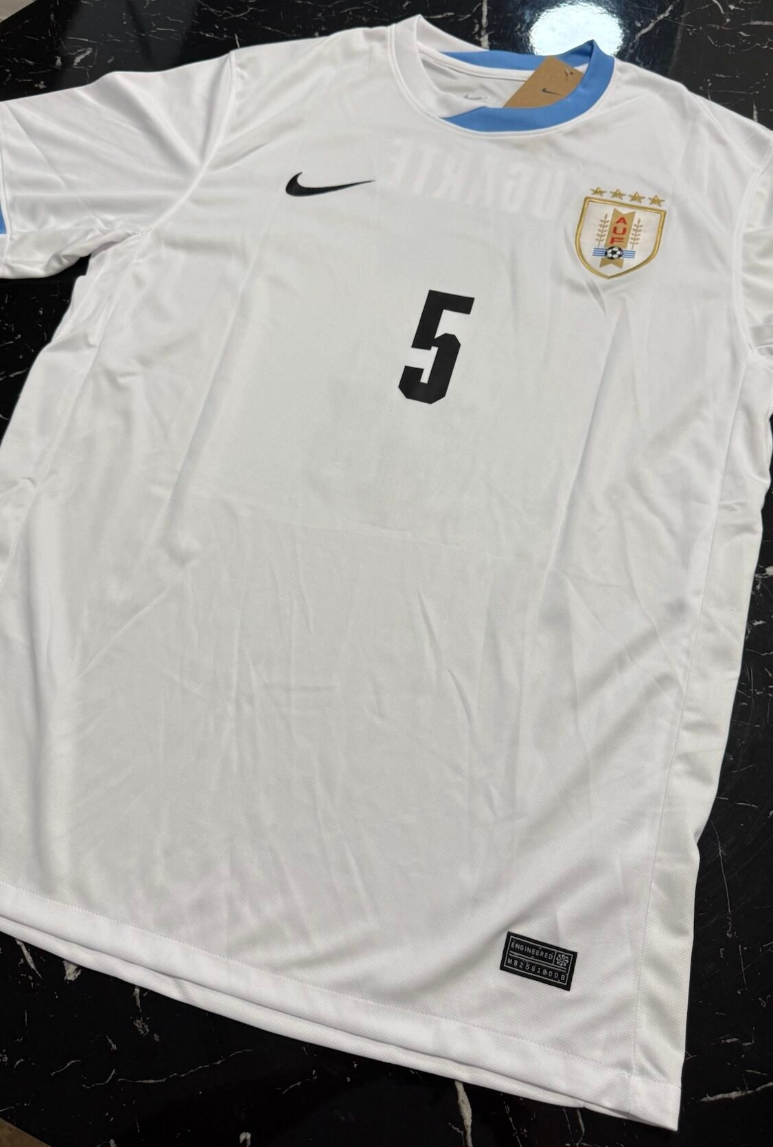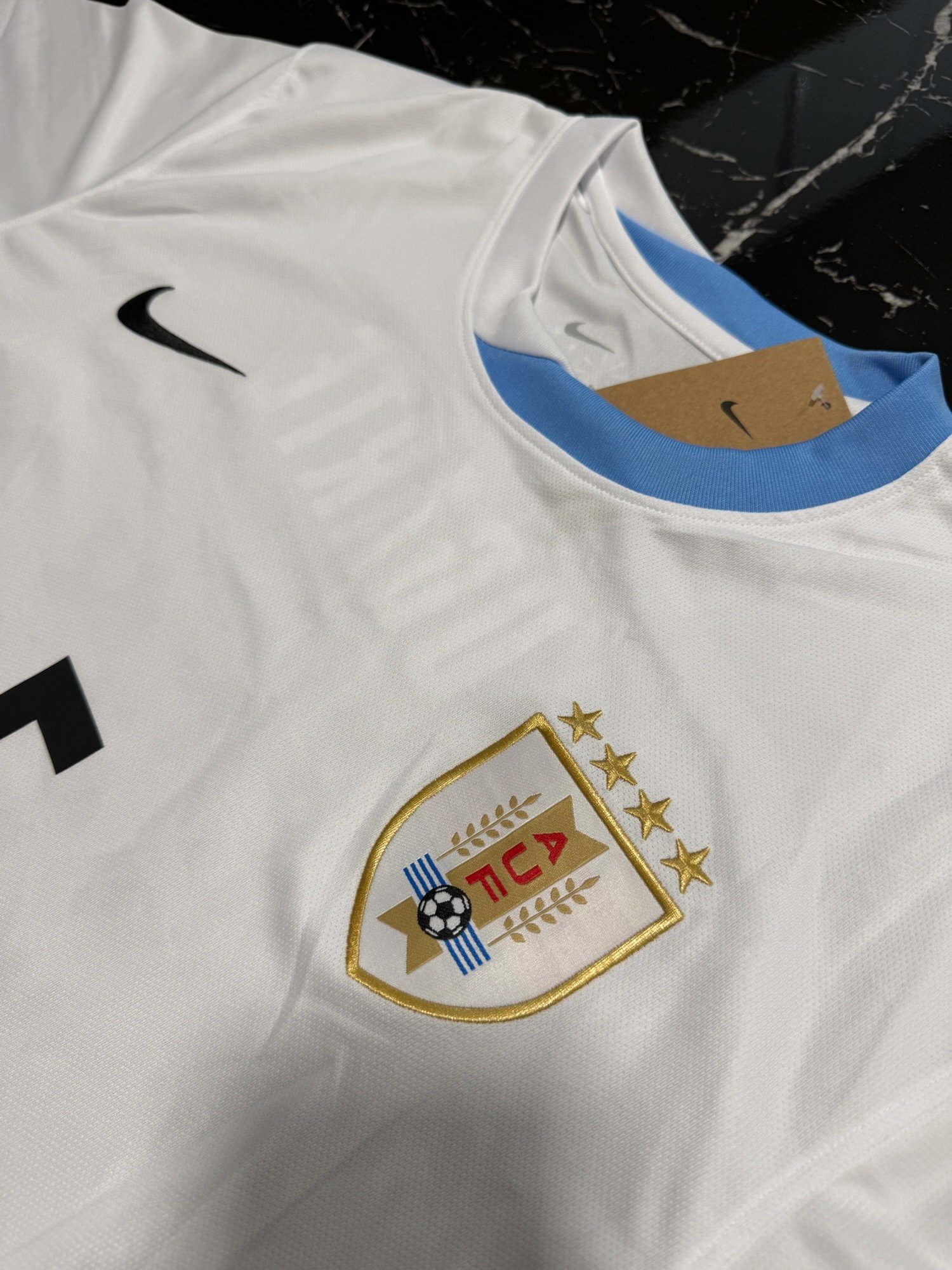 Este modelo visitante ofrece una alternativa a la tradicional celeste, manteniendo la identidad nacional con una propuesta moderna y sobria. Es la camiseta utilizada en competiciones oficiales durante la temporada 2024/25, representando a la nueva generación de futbolistas uruguayos en el escenario internacional.