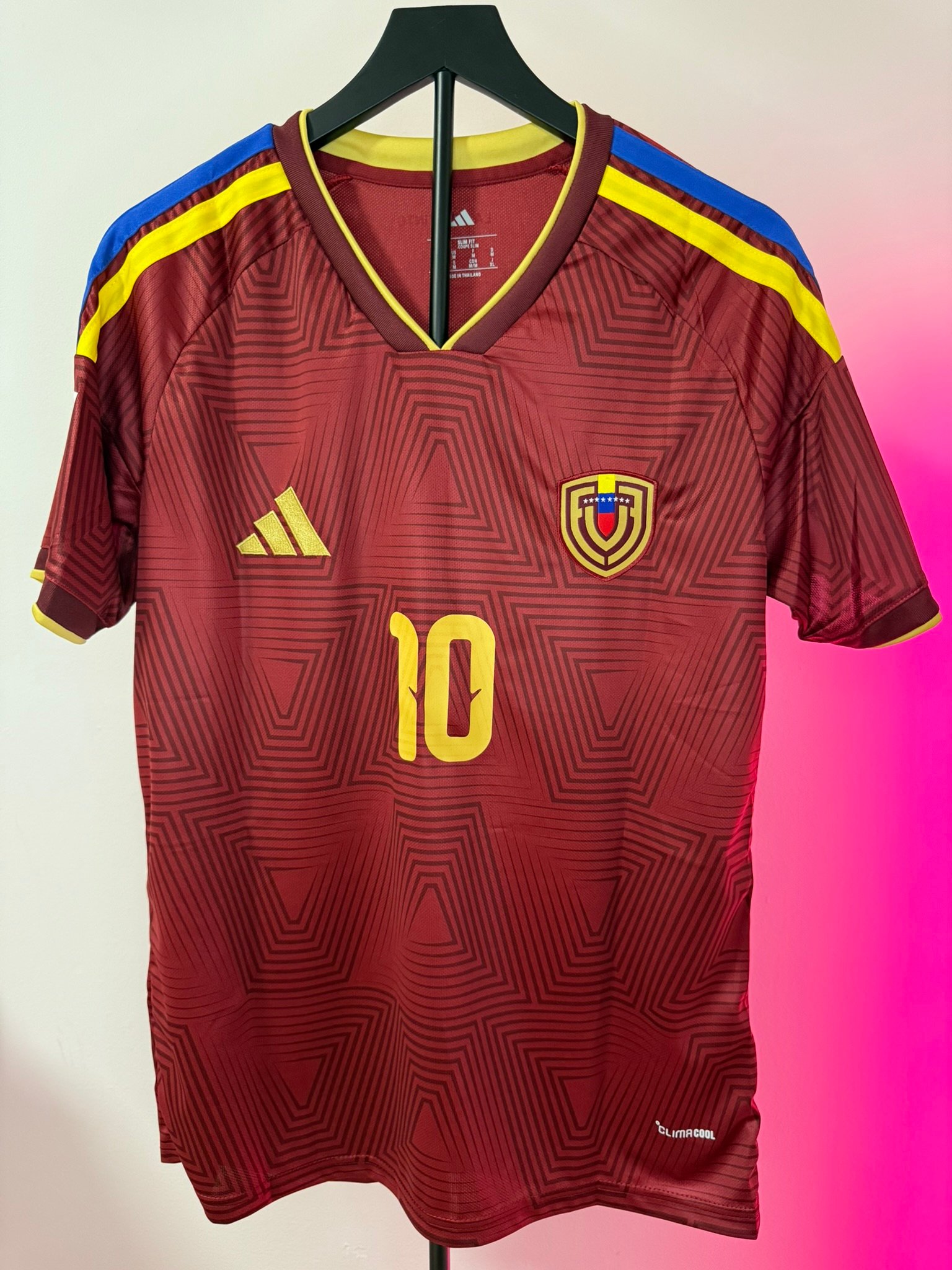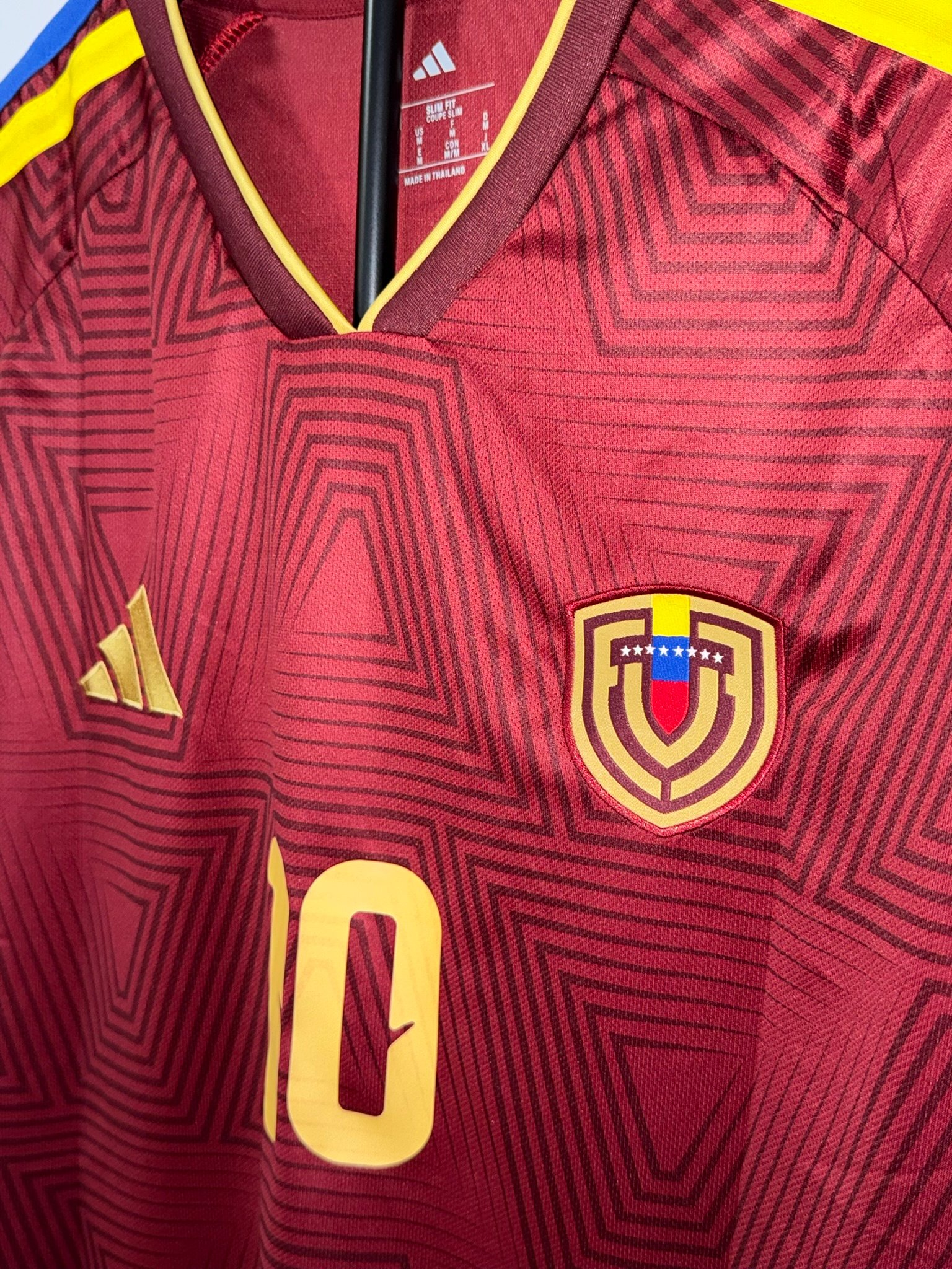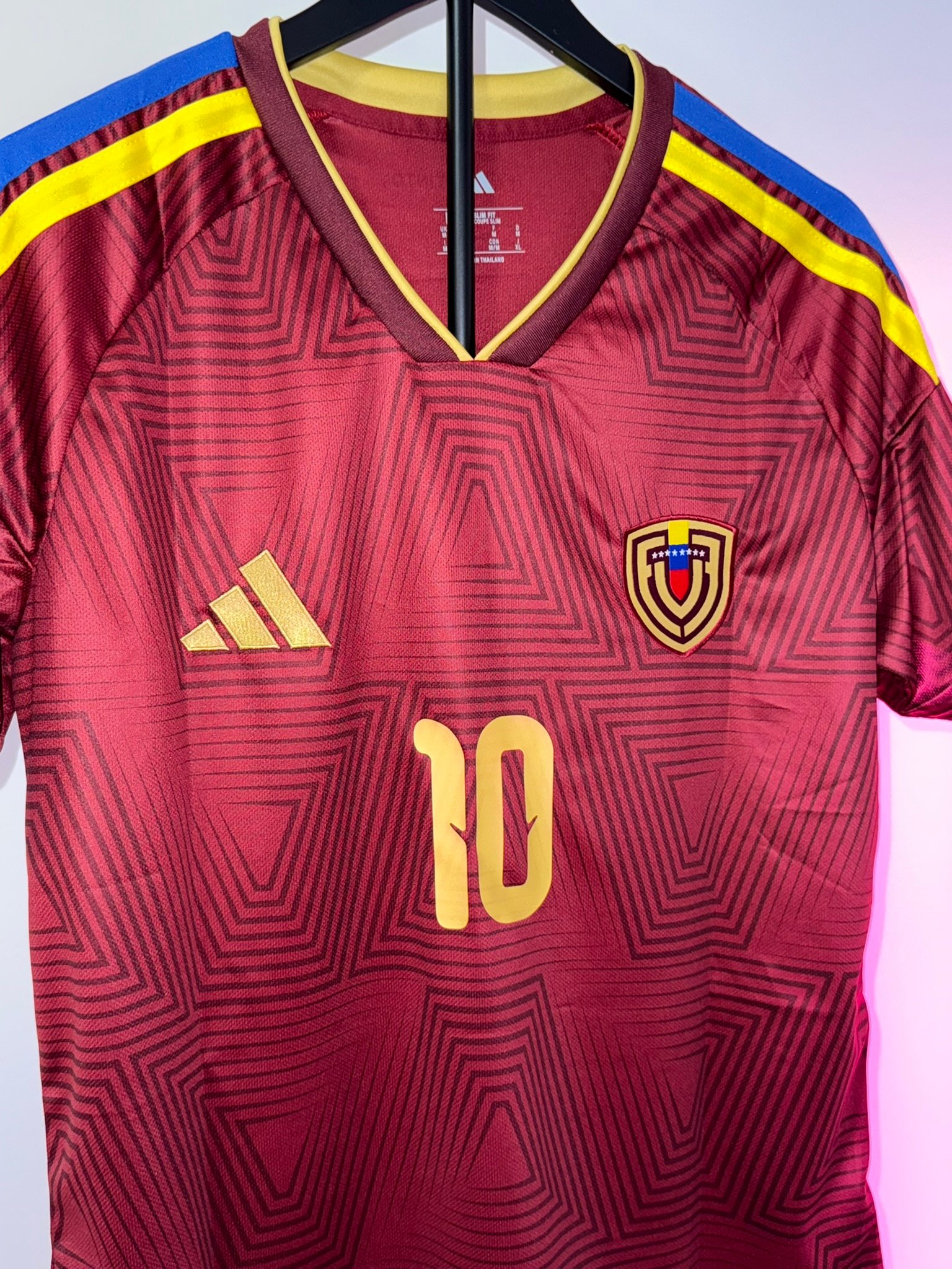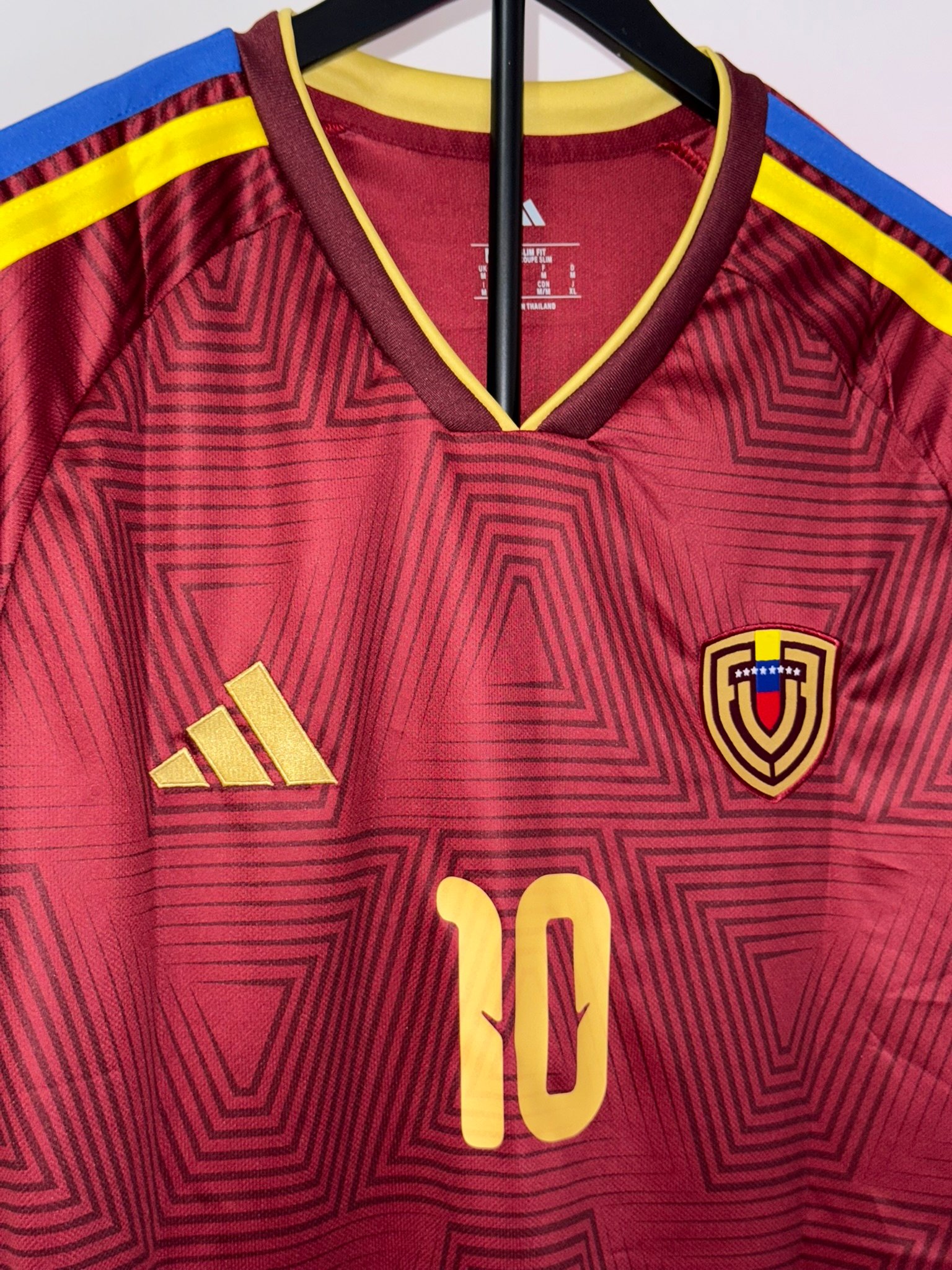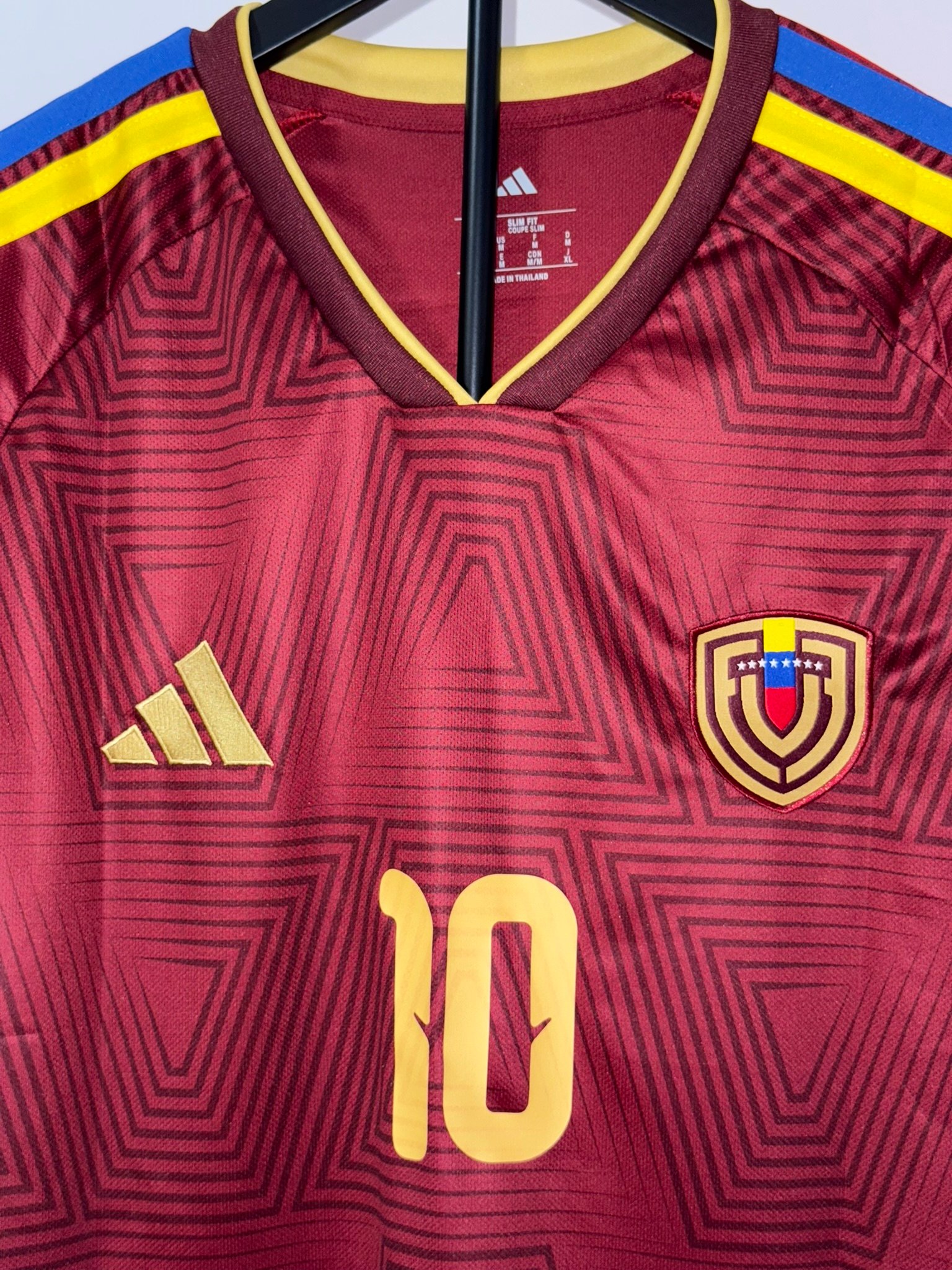 La camiseta local de Venezuela 2025/26 representa la identidad de La Vinotinto con un diseño moderno y elegante. El color vinotinto predominante, combinado con detalles en dorado y azul, refuerza el carácter y la personalidad de la selección.