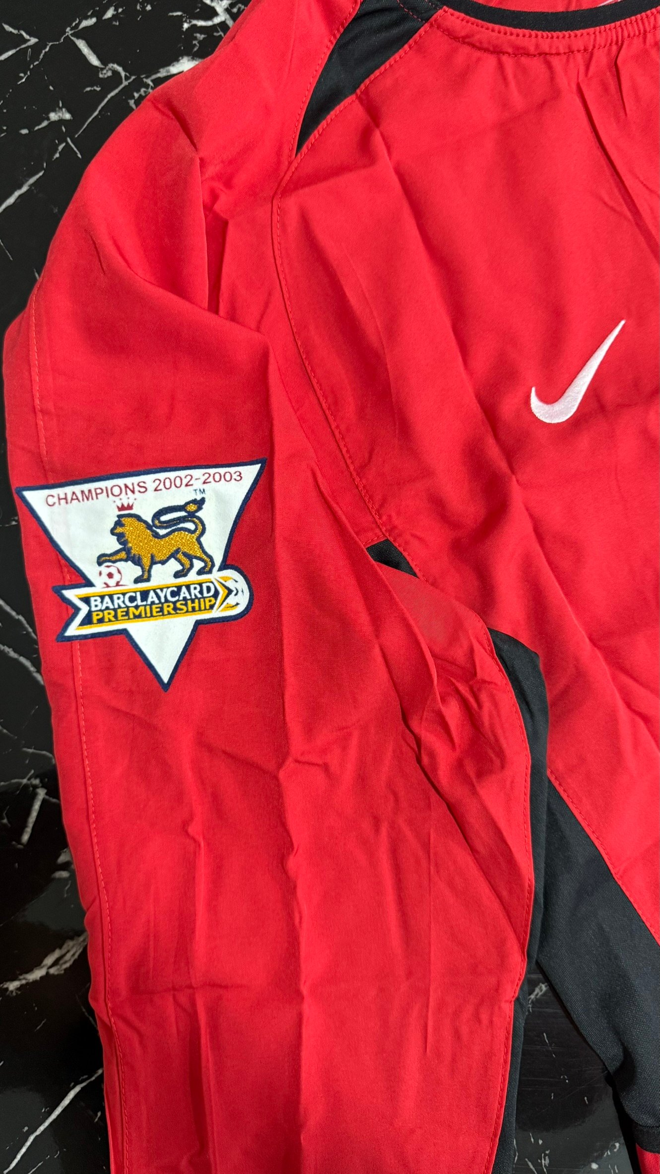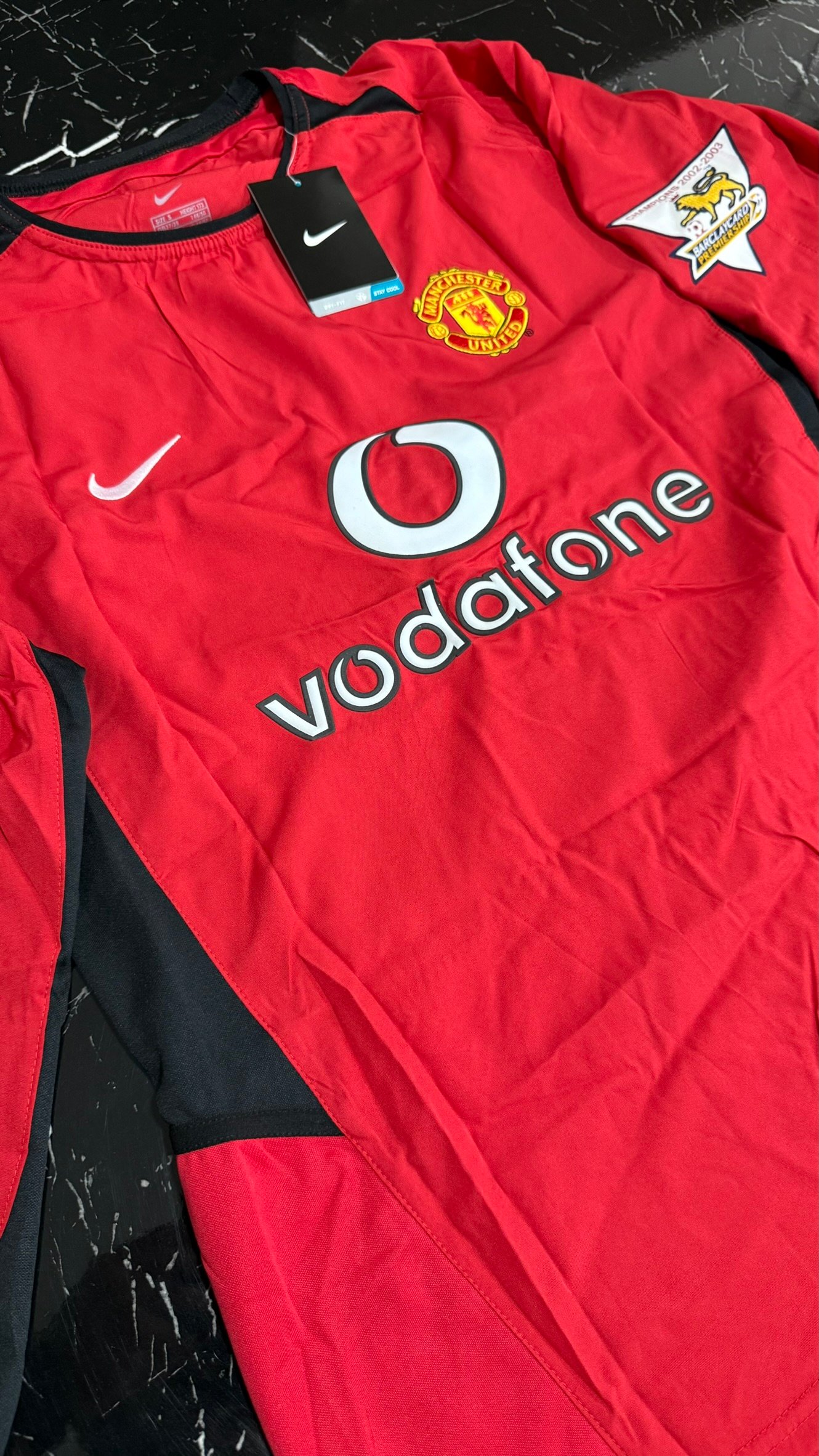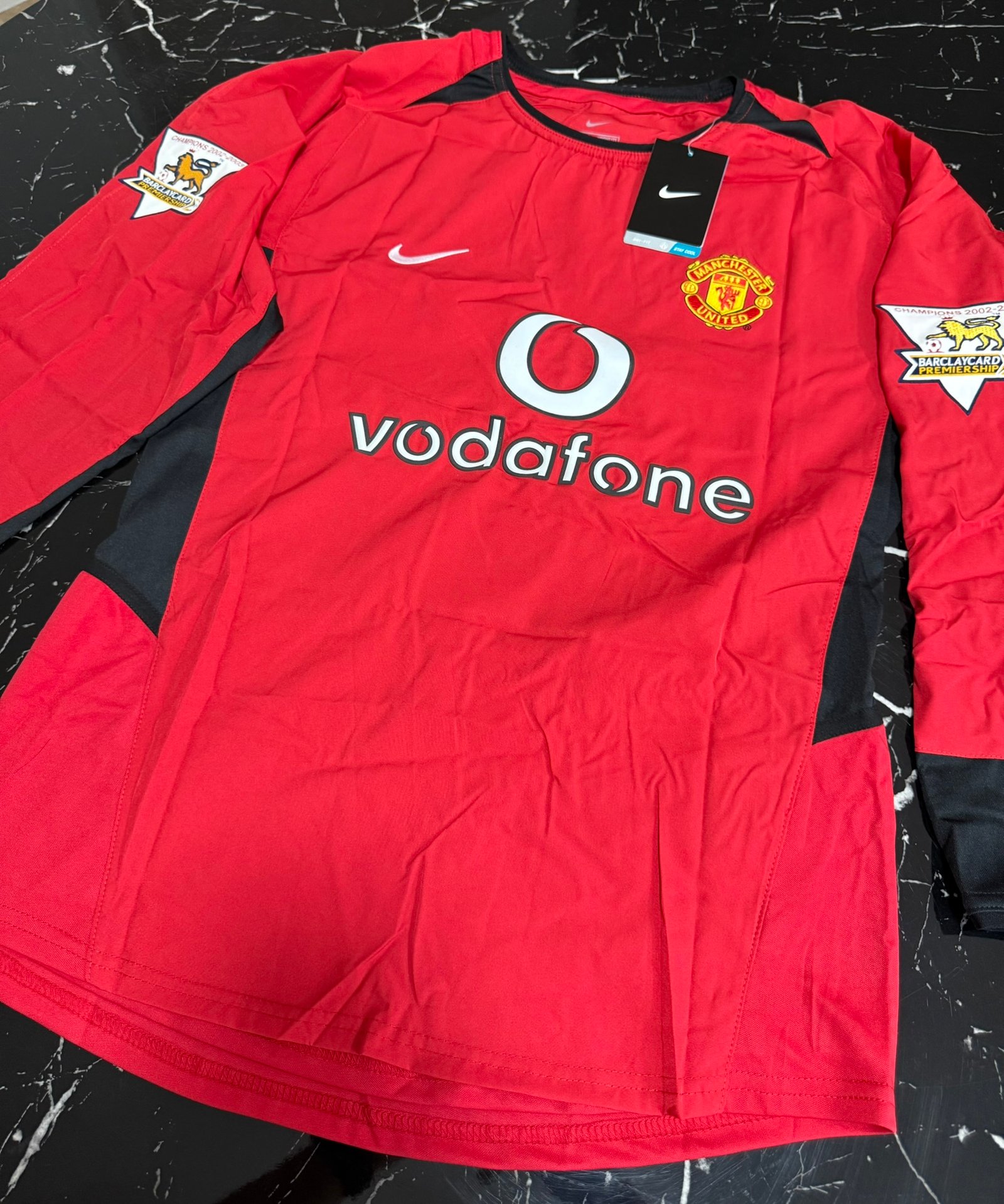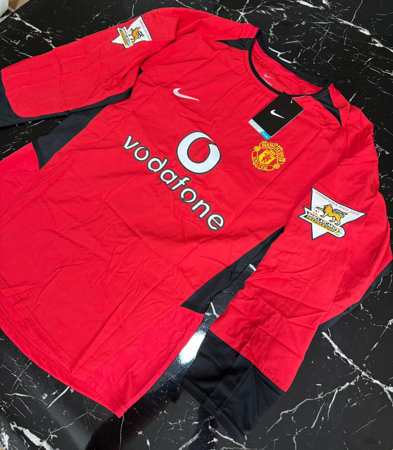 Una camiseta que representa el último gran Manchester United de la era clásica de Premier League. Temporada 2002/03, sponsor Vodafone al frente, mangas largas y un diseño que quedó grabado en la memoria de los hinchas del fútbol inglés.