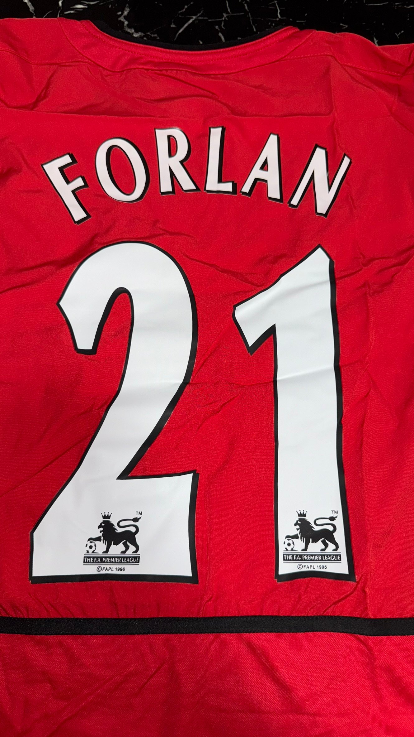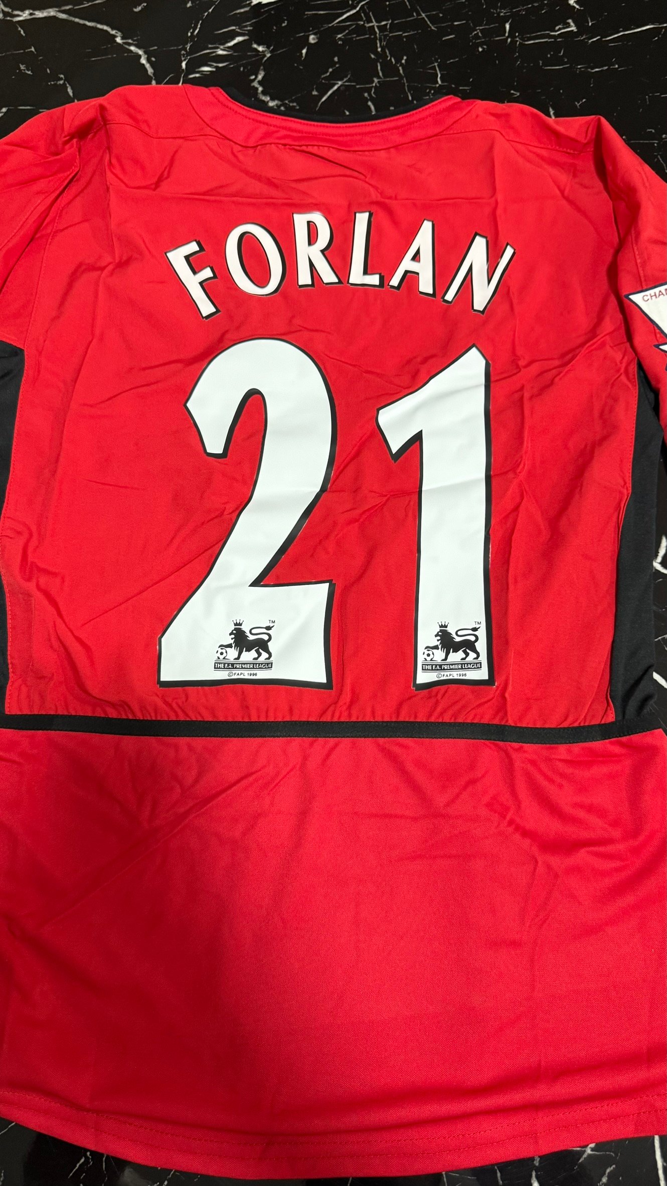 Este modelo retro reproduce el icónico diseño rojo con detalles en negro, cuello clásico y parches de Premier League de la época. Una camiseta asociada a una generación histórica del United y al paso de Diego Forlán por Old Trafford, una pieza muy buscada por coleccionistas y fanáticos del fútbol retro.