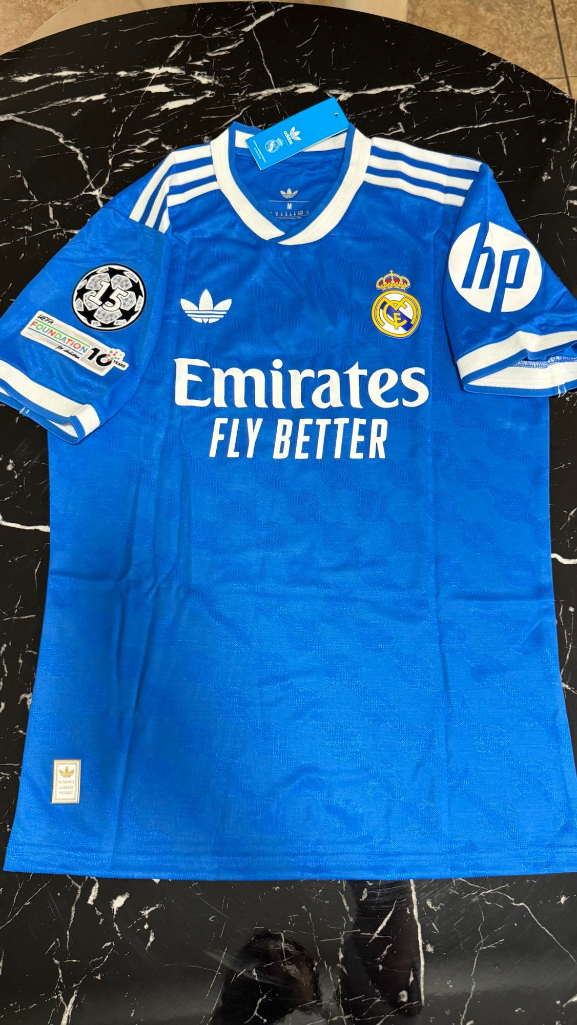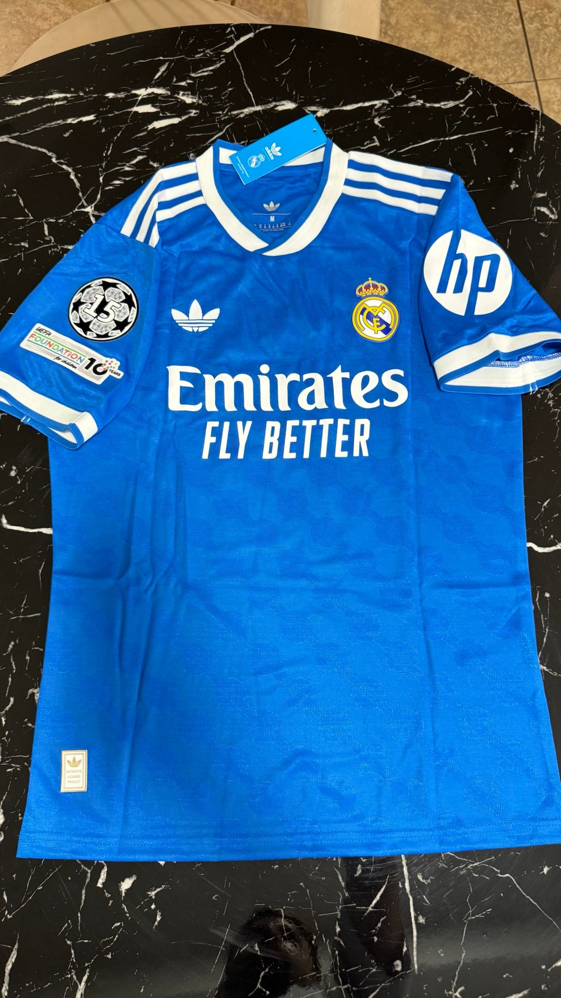 La camiseta alternativa del Real Madrid 2025/26 presenta un diseño moderno y elegante que se diferencia claramente de la tradicional blanca. El tono azul, combinado con detalles cuidados, refuerza una identidad sofisticada y contemporánea, manteniendo el ADN del club más ganador del mundo.
