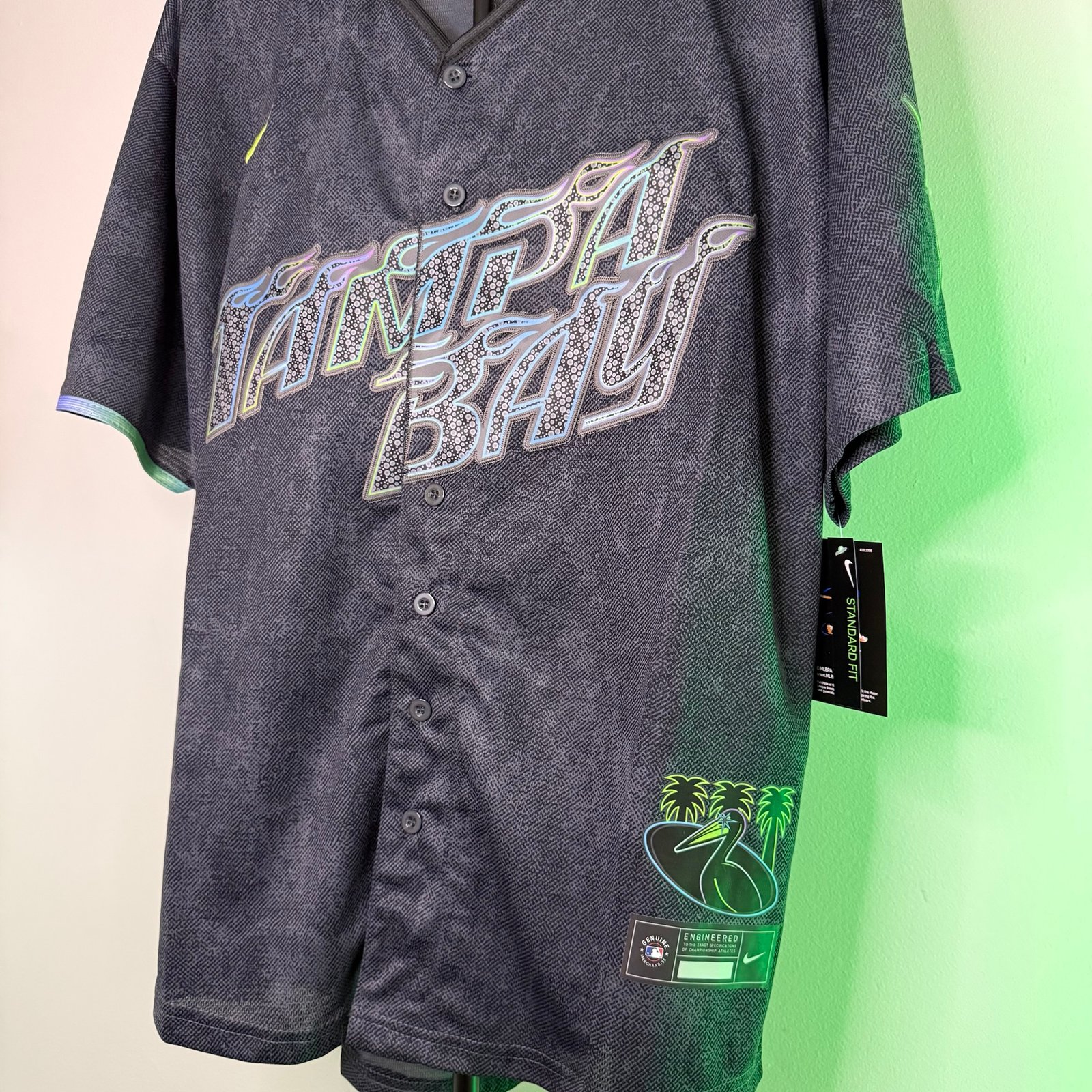 La Tampa Bay Rays Charcoal Grey City Connect – Limited Jersey (Díaz #2) es una edición especial dentro de la línea City Connect de la MLB, creada para reflejar la identidad visual moderna de Tampa Bay.