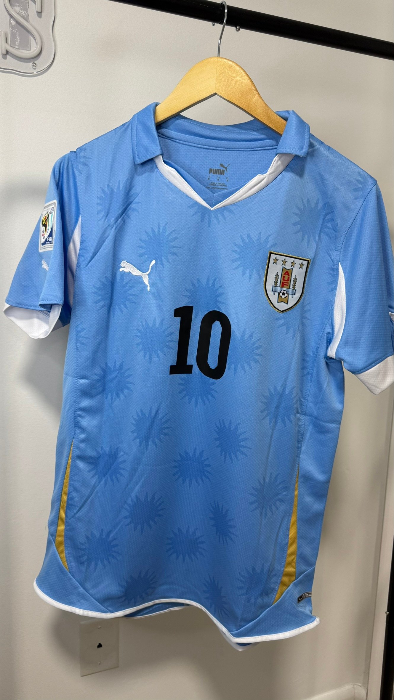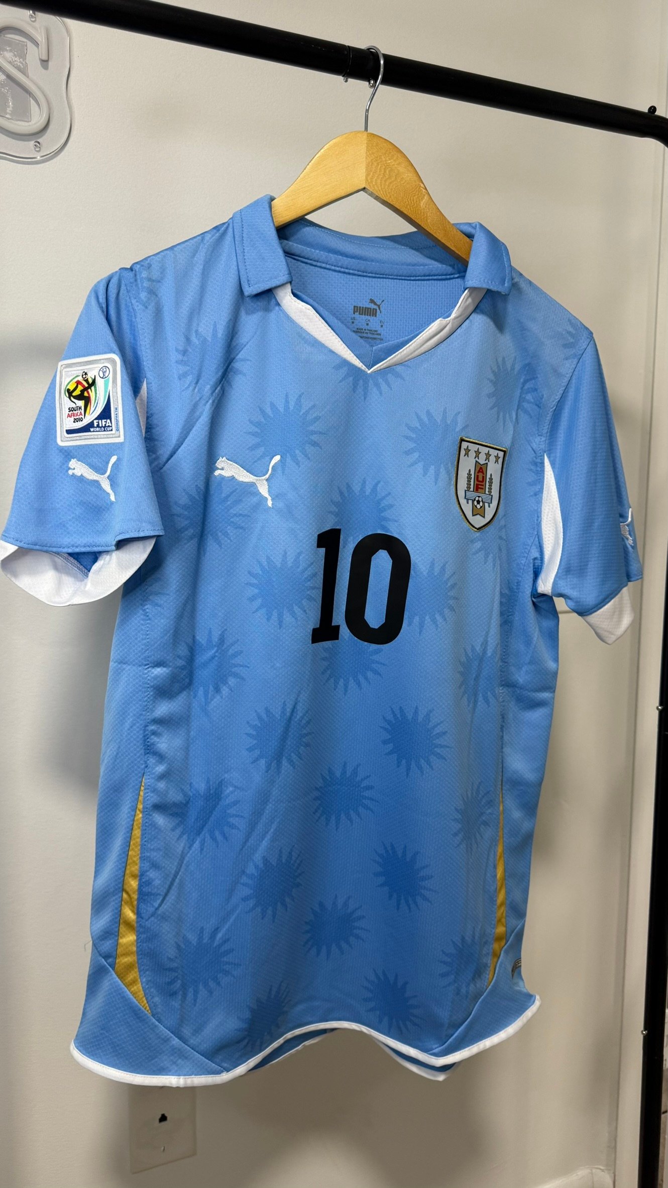 La camiseta que marcó una era dorada del fútbol uruguayo. El Mundial de Sudáfrica 2010 quedó grabado en la historia por la entrega, el carácter y el talento de una generación inolvidable, liderada por Diego Forlán.