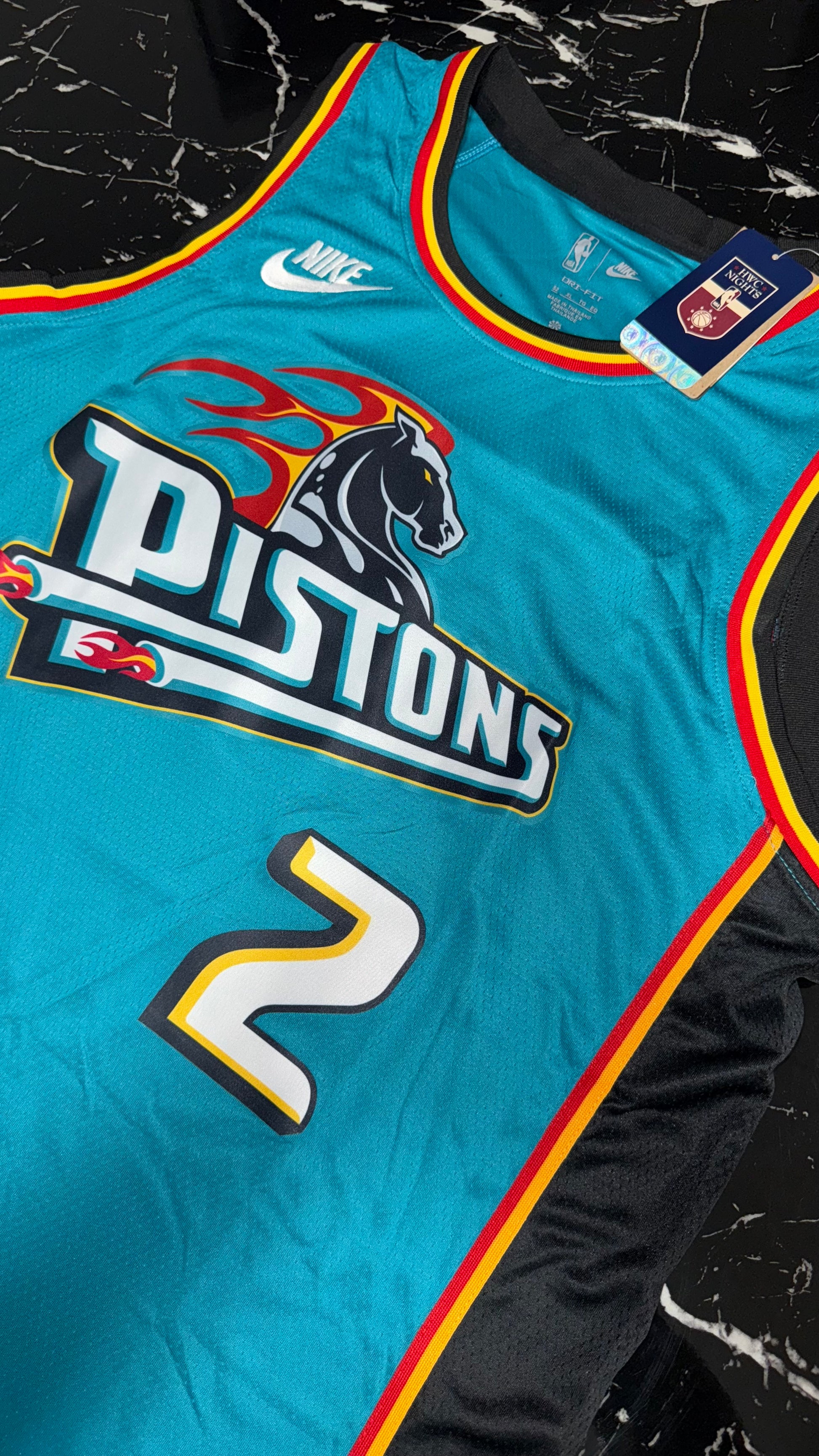 Un modelo cargado de nostalgia que combina historia y estilo, imprescindible para coleccionistas y seguidores de los Pistons.